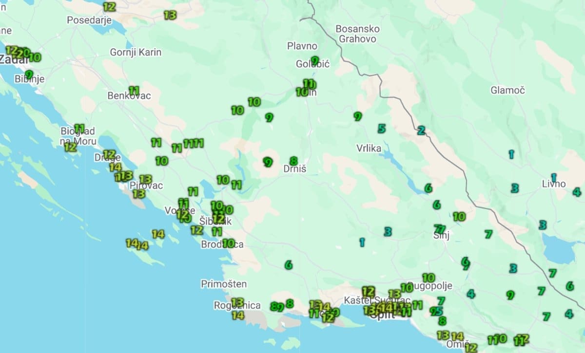 Pregledavajući jutrošnje temperature na mreži Pljusak.com primjećujemo da je u dijelu Dalmatinske zagore jako hladno.