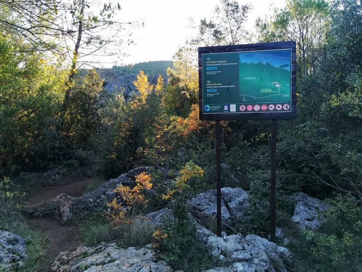 Na osnovu člana 40. Zakona o zaštiti prirode ("Narodne novine" br.19/60.) Zavod za zaštitu prirode u Zagrebu donio je rješenje: Utvrđuje se da predjel Kočje u selu Žrnovu na Korčuli ima svojstvo zaštićenog objekta prirode kao specijalni rezervat šumske vegetacije, te se određuje upis tog objekta u registar zaštićenih objekata prirode. U spomenutom rezervatu šumske vegetacije zabranjena je sječa i oštećivanje stabala crnike, branje i oštećivanje ostale vegetacije, lomljenje stijena i drugi zahvati, koji mogu uzrokovati promjenu prirodnih izgleda objekta. Iskorištavanje maslina u rezervatu je dozvoljeno. Između raznolikih stijena raste oko 100 starih stabala crnike. Najstariji primjerci dostižu starost oko 100 godina. Predjel Kočje, koji je zadržao izgled netaknute prirode, ima geološku, botaničku i estetsku vrijednost. Ukupna površina predjela Kočje iznosi 4,62 ha. Upisan je u registar zaštićenih objekata prirode pod registarskim brojem 66 – 23. svibnja 1962.