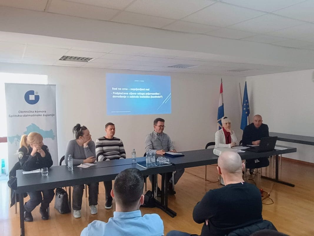 Skup prijevoznika putnika u cestovnom prometu održan je ovog tjedna u prostorijama Obrtničke komore Splitsko-dalmatinske županije. Riječ je o strukovnom događaju koji je okupio veliki broj zainteresiranih obrtnika od Dubrovnika do Zadra. Skup je organiziran na inicijativu županijskog Ceha prijevoznika, a obrtnici su postavljali pitanja predstavnicima Porezne uprave Ivi Jelaviću i Tanji Bašić, Nevenu Lelasu ispred Ministarstva mora, prometa i infrastrukture te Aniti Vuletić ispred Ministarstva unutarnjih poslova.