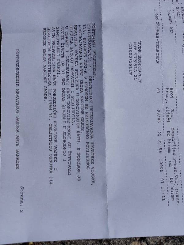 Svim pripadnicima naše pobjedničke Hrvatske vojske i hrvatskim braniteljima čestitam 31. obljetnicu 114. brigade Zbora narodne garde", čestitao je potpredsjednik Hrvatskog sabora Ante Sanader.