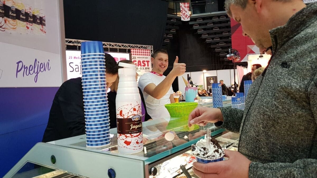 - Na GAST-u smo bili najveći štand. U odnosu na lani porasli smo nešto više od 70 posto kada je u pitanju naš promet. Vjerujem da su rastu najviše doprinijele kadice od 5 litara. To su naši proizvodi koji su izrađeni kao da vi imate vlastite strojeve i kao da sami radite sladoled. Dovoljno ga je samo malo ukrastiti u sve izgleda kao da je vaša proizvodnja. Ugostitelji koji imaju svoje strojeve od naših sirovina mogu proizvoditi sladoled. Ti se sladoledi izlažu u velikim vitrinama od 220 centimetara. Pokazalo se da te vitrine nama donosu prometa više nego 20 malih. Kada smo to uvidjeli, više smo se bazirali na dobre pozicije s velikim vitrinama nego puno malih vitrina.