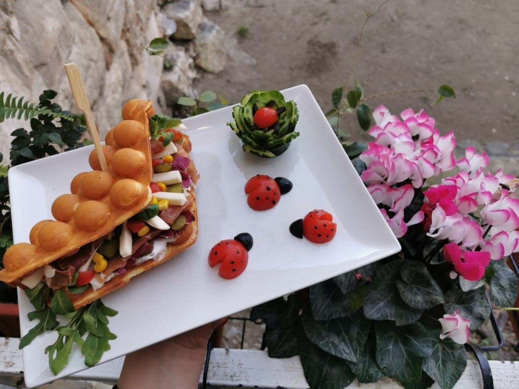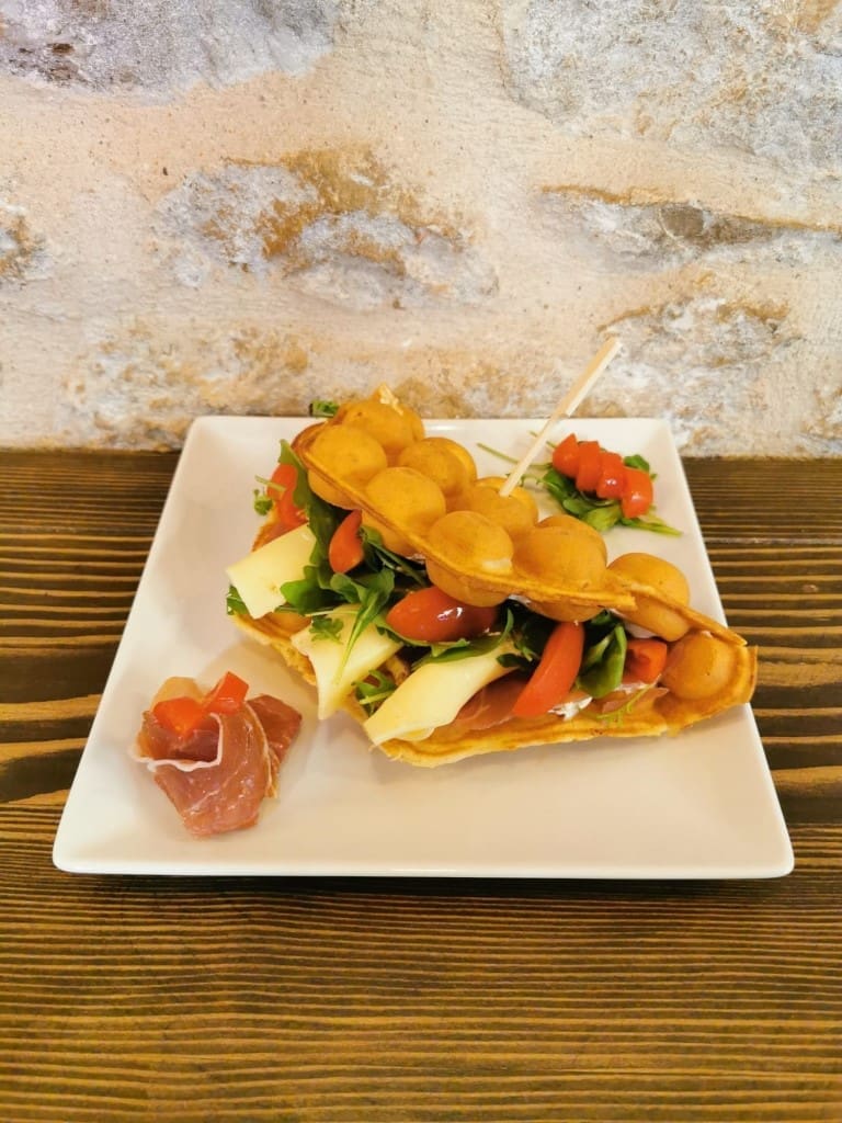 Slane bubble waffle izgledaju poput samostalnog obroka. Ako naručite primjerice “Dalmatino” servirat će vam wafflu od slanog tijesta s pršutom, mozzarellom, mileramom, cherry rajčicama i rikulom. Osim pršuta postoje i oni s kulenom, te pizza varijanta, ali naravno, možete odabrati i opciju “sam svoj majstor” te u ovu slasnu deliciju složiti punjenje po vlastitom izboru.