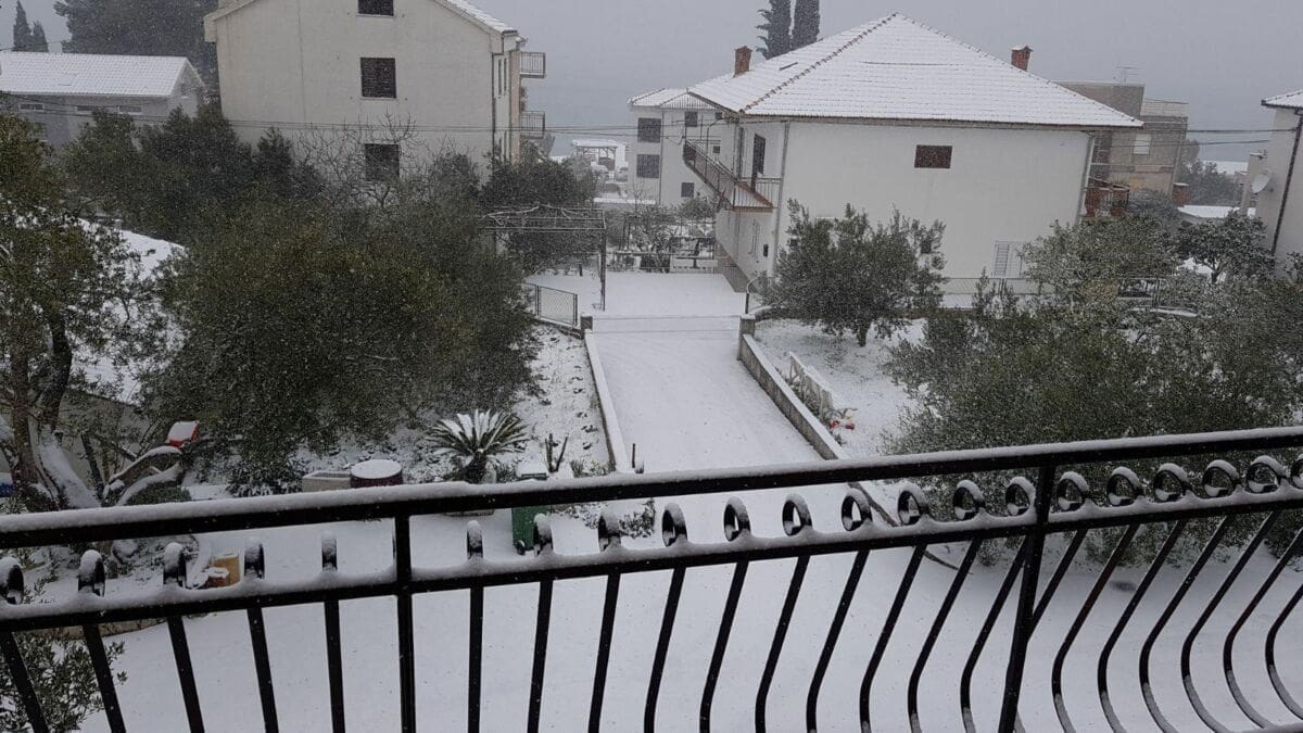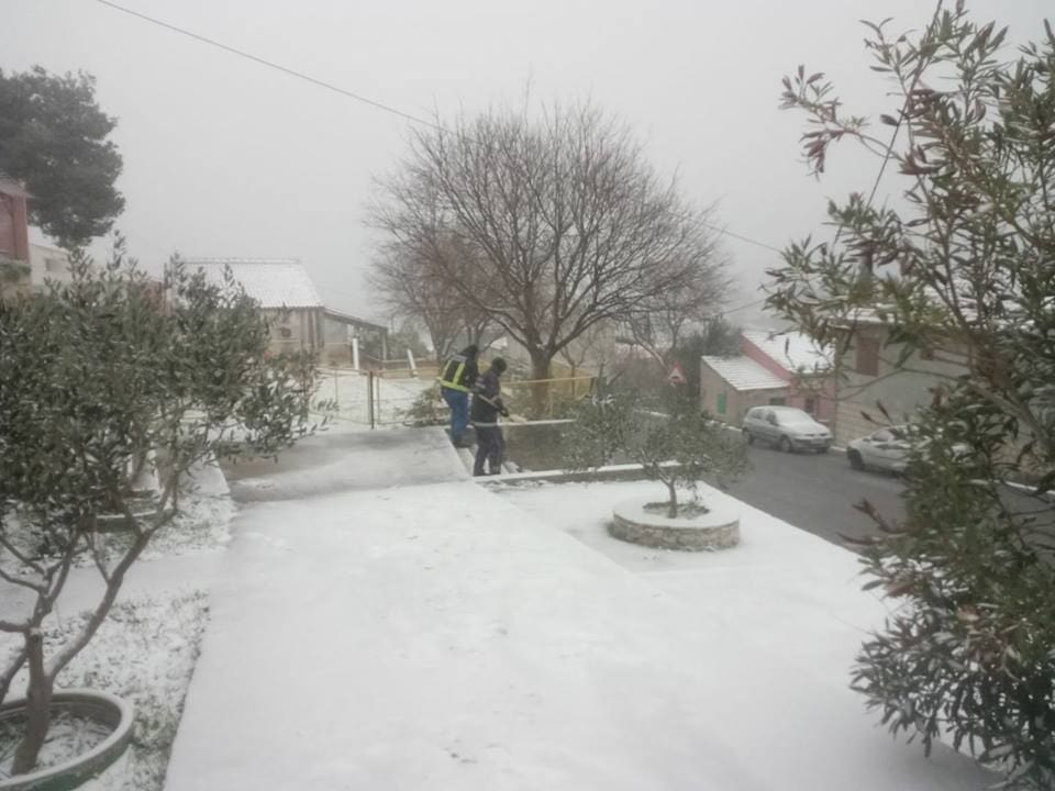 Snijeg cijelog dana pada na Čiovu, a dijelovi našeg poluotoka (nedavno zamalo i otoka kada je oštećen stari Čiovski most). Viši predjeli Čiova primili su desetak centimetara snijega, a snježni pokrivač stvorio se sve do mora.
