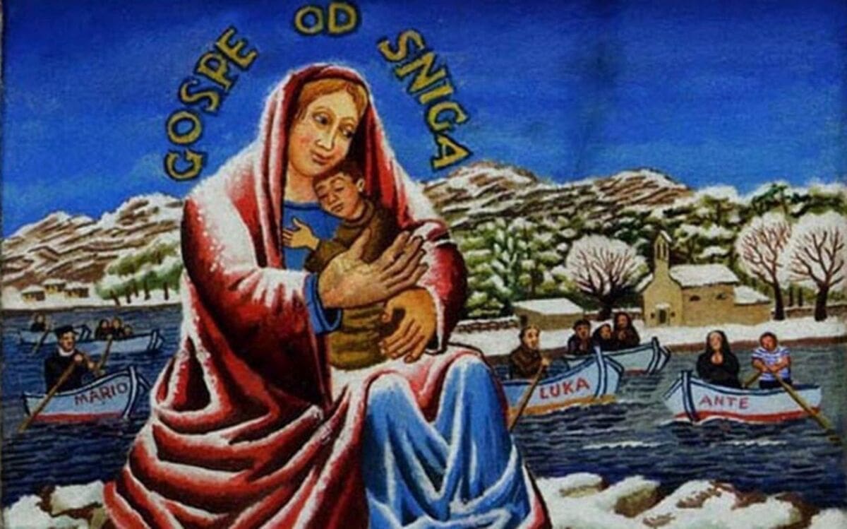 I tako je u noći, 5. kolovoza usred ljeta pao snijeg na brežuljku Eskvilinu u Rimu. Sagrađena je bazilika pod imenom Santa Maria Maggiore (Sveta Marija Velika). Uz to bazilika se zove i Sancta Maria ad nives – Gospa od snijega. Na našoj obali ima nekoliko crkvica posvećenih Gospi snježnoj ili kako neki kažu Gospi od sniga. Zove se i Sancta Maria ad praesepe – Gospa od jaslica, jer je u njoj već koncem IV. stoljeća načinjena špilja, nalik na onu u Betlehemu gdje se rodio Isus. Bazilika Santa Maria Maggiore jedna je od četiri velike bazilike u Rimu te najznačajnija, a i najčasnija Gospina crkva na kršćanskome Zapadu. Građena je u stilu starokršćanskih bazilika s monumentalnim stupovljem te velebnim mozaicima.