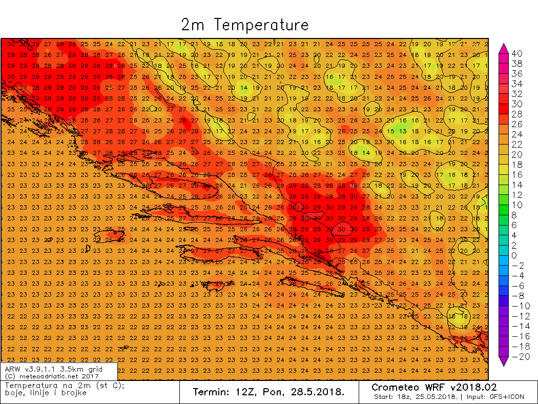 A Iako nas još šest dana dijelu do početka klimatološkog ljeta, već od danas u Dalmaciju se vraćaju temperature zraka s ljetnim predznakom. Konkretno, neka će područja već u subotu, a osobito sljedećih dana dosegnuti ili malo prijeći vrućih 30°C.