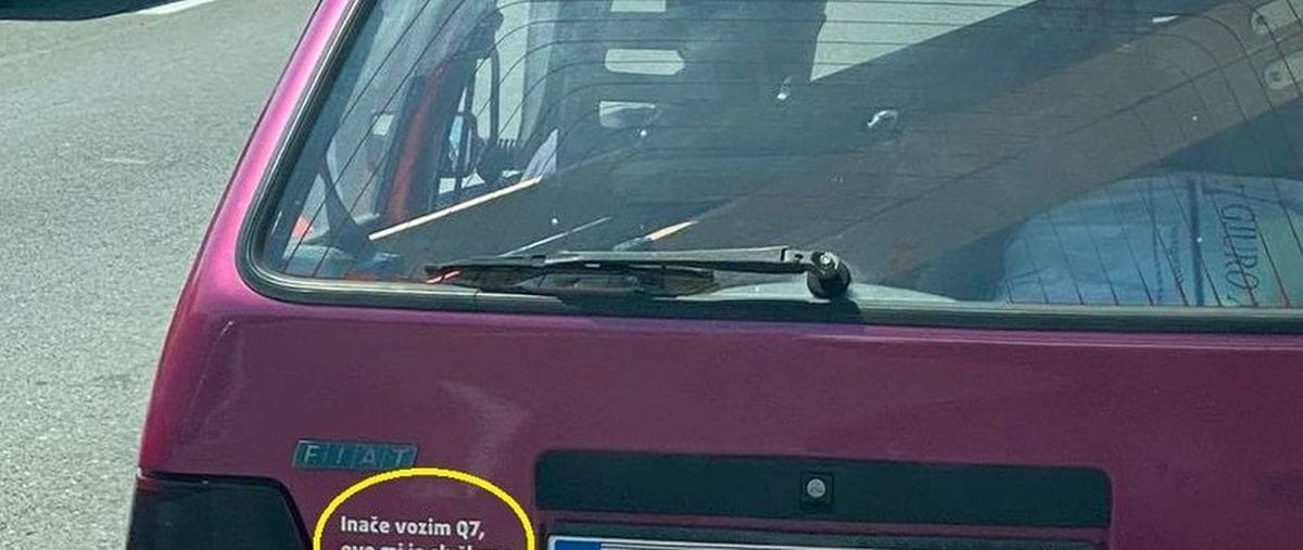 Vozač automobila marke Fiat nasmijao je brojne Splićane naljepnicom koju je zalijepio na automobil.