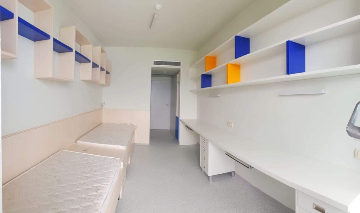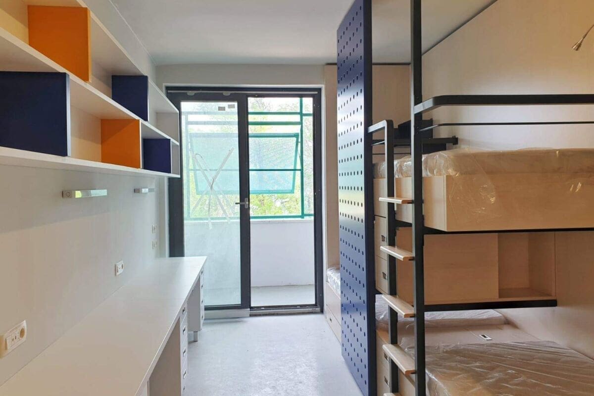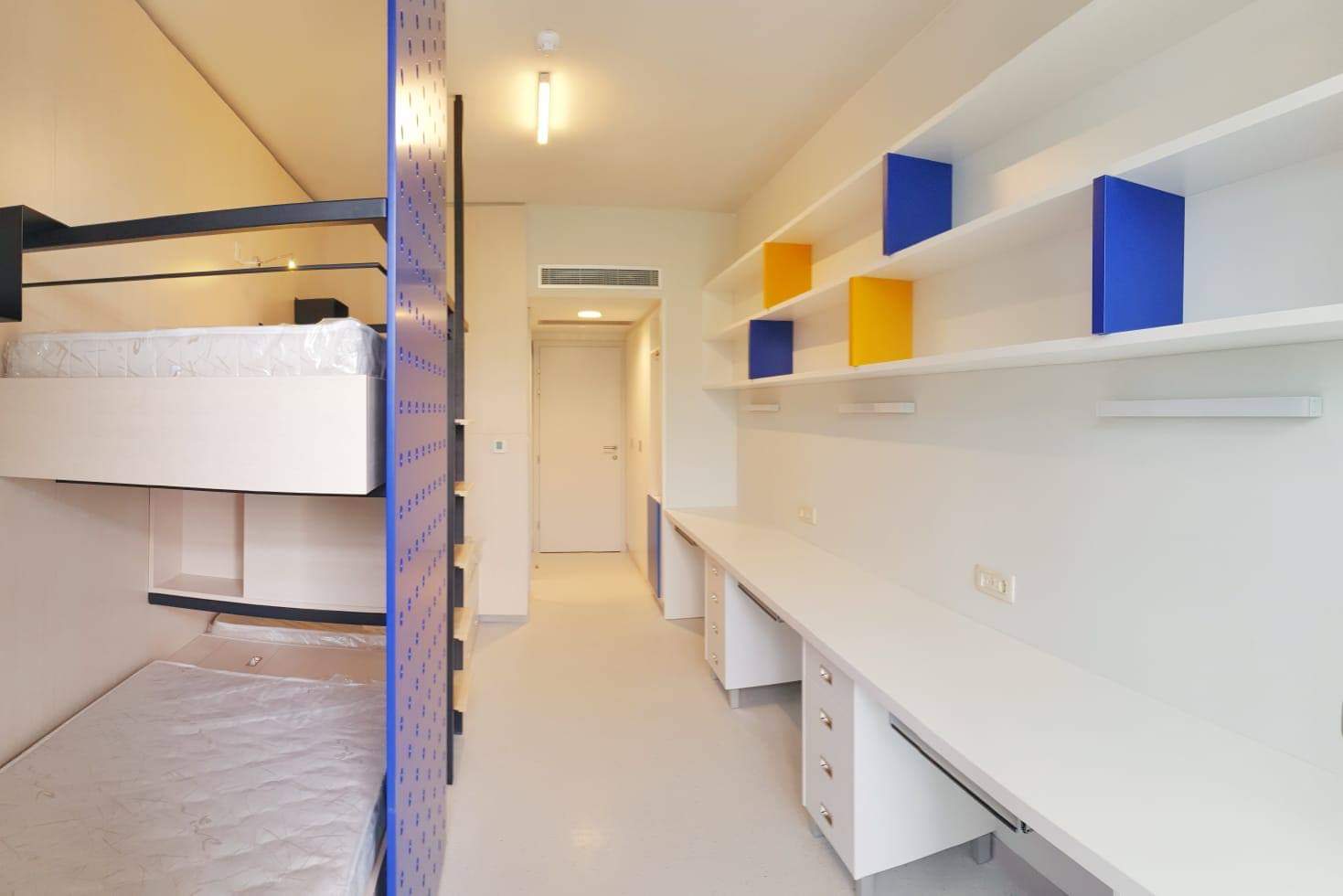 - U prizemlju je smještena mala kantina i moderna multifunkcijska učionica za studente, a svaka soba sadrži balkon, klimatizacijski uređaj, hladnjak i wi-fi internetsku vezu.