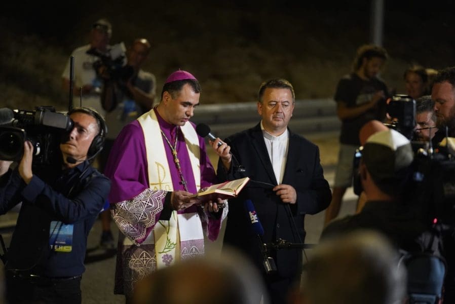 U ovim trenutcima traje blagoslov Pelješkog mosta, molitvu predvodi dubrovački biskup Mons. Roko Glasnović. Svi vodeći uzvanici pridružili su se blagoslovu.