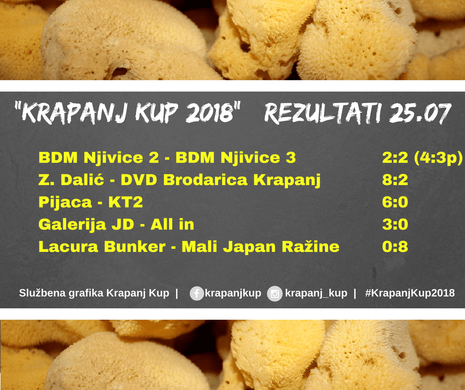 U srijedu, 25. srpnja službeno je započeo Krapanj kup 2018. Prijavljeno je ukupno 30 ekipa s područja Šibensko - kninske županije, a prvu večer turnir je odgledalo oko 200 posjetitelja.