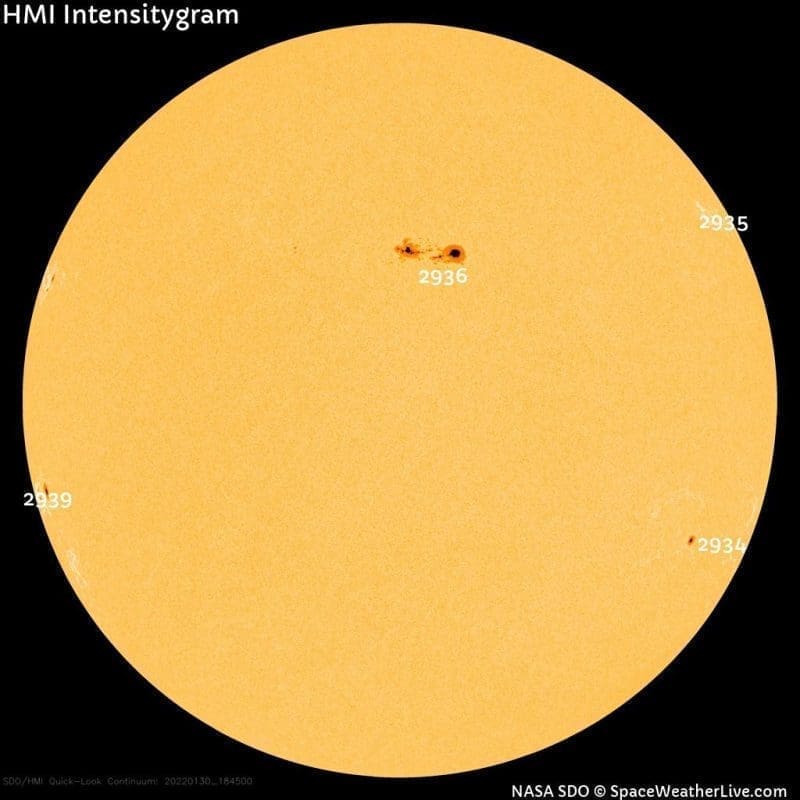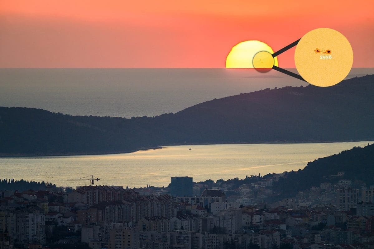 Zanimljivo, na jednoj fotografiji za vrijeme zalaska Sunca može se primijetiti sunčeva pjega koja ima službenu oznaku 2396.