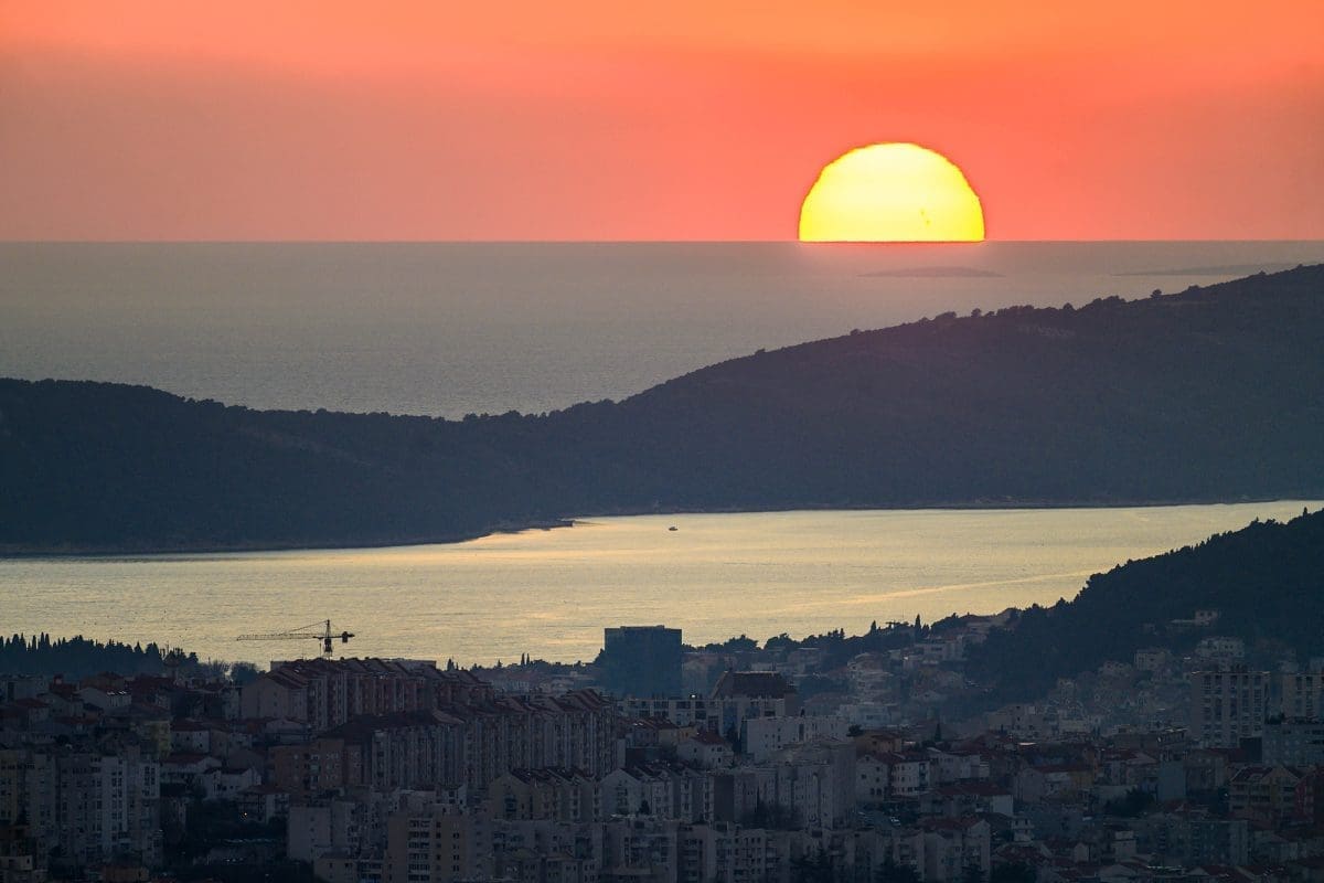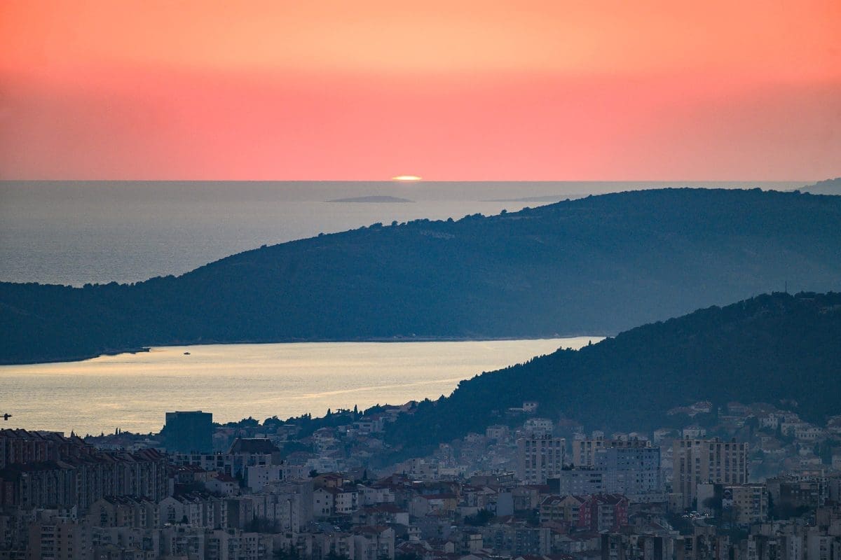 Iako je predvečer bilo nešto izmaglice, smiraj dana ponudio je predivne prizore i intenzivno nebesko rumenilo. Mi vam donosimo fotogaleriju snimljenu s crkvice sv. Petra iznad Kučina. S ove lokacije pruža se prekrasan pogled na Split, Solin, Kaštela, Kozjak, otoke...