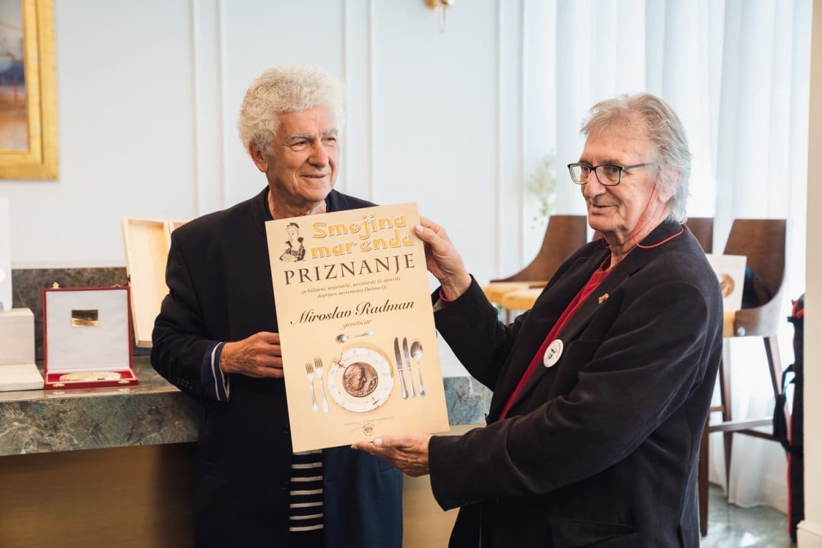 "Danas sam u posebnom raspoloženju. Došlo je i kao jako ugodno iznenađenje. Nisam imao priliku u gimnaziji razgovarati s Miljenkom, ali sam ga vidio stotine puta. Zato sam se narazgovarao sa Lepom, njegovom suprugom. Imam tu u sebi, ono što se kaže u crijevima, jednu lijepu memoriju i danas mi je jako drago. Poseban dan. Puno mi znači ova nagrada pogotovo kad vidim sve prošle laureate, nalazim se u sjajnom društvu. Sretan sam", kazao je dobitnik Miroslav Radman.