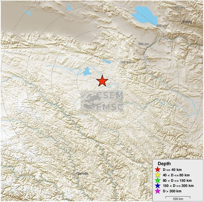 Prema podacima EMSC-a magnituda potresa bila je 7.4 stupnja prema Richterovoj ljestvici, a epicentar potresa bio je 382 kilometra jugozapadno od grada Xininga.