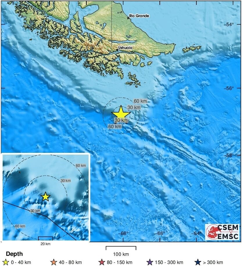 Prema podacima Američke geološke službe (USGS), potres magnitude 7,4 zabilježen je u 13:58 po lokalnom vremenu, s epicentrom 219 kilometara od obale argentinskog grada Ushuaije. Potres je osjetio i jug Čilea, a lokalne vlasti izvijestile su o seriji naknadnih podrhtavanja tla.
