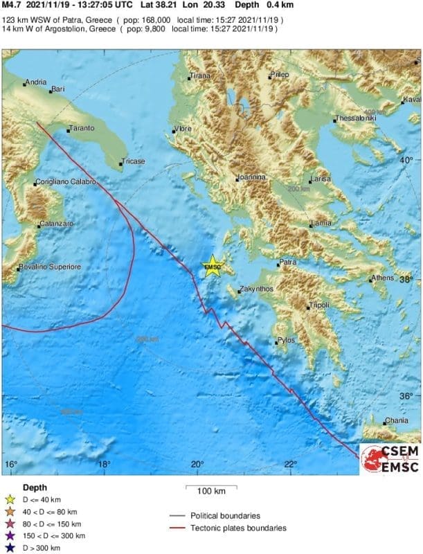 Prema prvim podacima EMSC-a, magnituda potresa je iznosila 5.0 prema Richteru, a epicentar je bio na otoku Kefalonija, 21 km zapad-sjeverozapadno od grada Argostólion.