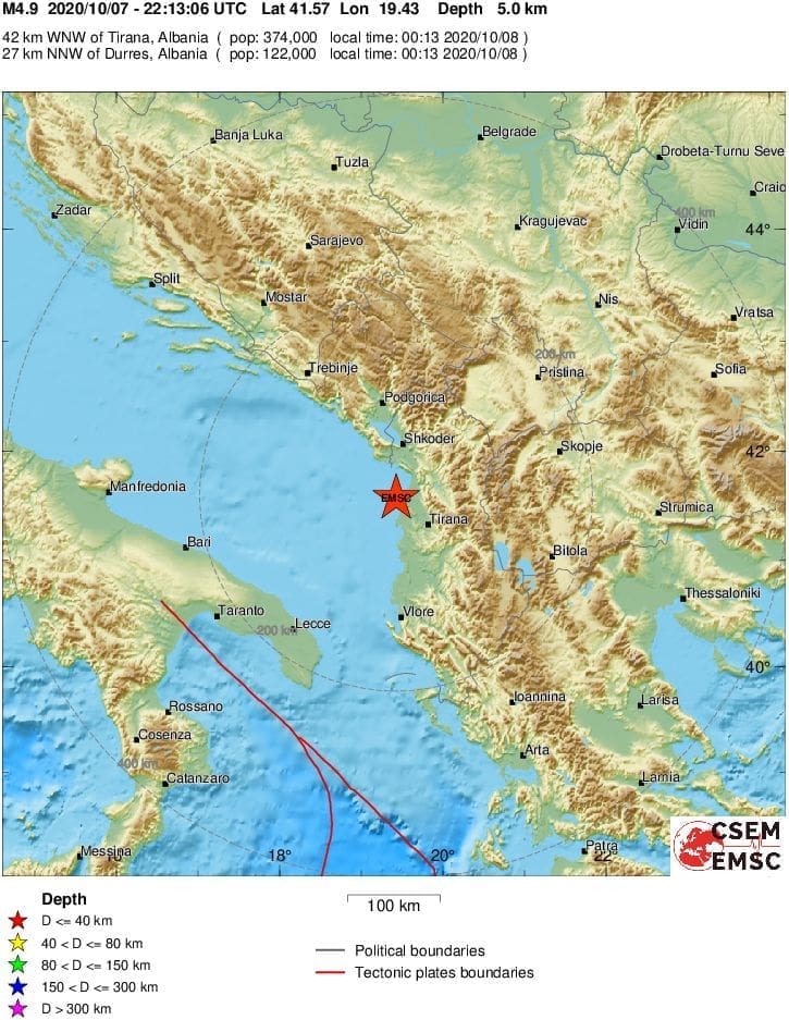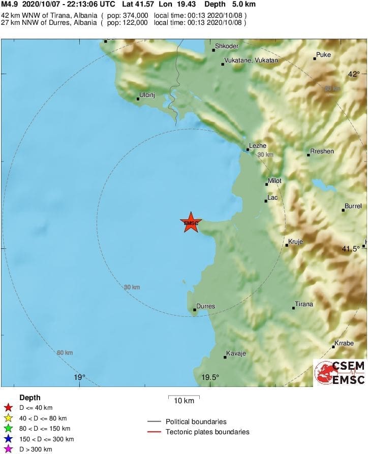 Iako su prvi podaci EMSC-a govorili o magnitudi 4.9, ona je u međuvremenu korigirana na 4.6. Epicentar je bio 27 kilometara sjever-sjeverozapadno od Drača.