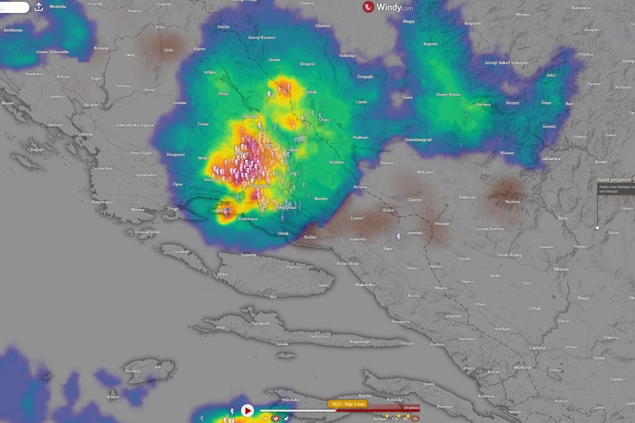 Iza 18 sati snažno grmljavinsko nevrijeme razvilo se na području od Mosora do Kamešnice, a bilo je kiše, pljuskova, grmljavine, a ponegdje i tuče. Nakon 18 sati najjače nevrijeme zahvatilo je područje od Sinja do Solina te zapadnog dijela Mosora. Nažalost, radi se o području kojim upravo prolaze brojni hodočasnici prema Sinju.