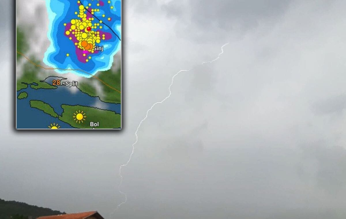 Nakon što je jutros grmljavinsko nevrijeme zahvatilo sjevernu Dalmaciju, u popodnevnim satima nevrijeme je zahvatilo dijelove Zagore srednje Dalmacije. Iza 14 sati linija grmljavinskih oblaka zahvatila je Cetinsku krajinu, a najjače nevrijeme pogodilo je područje Hrvaca.