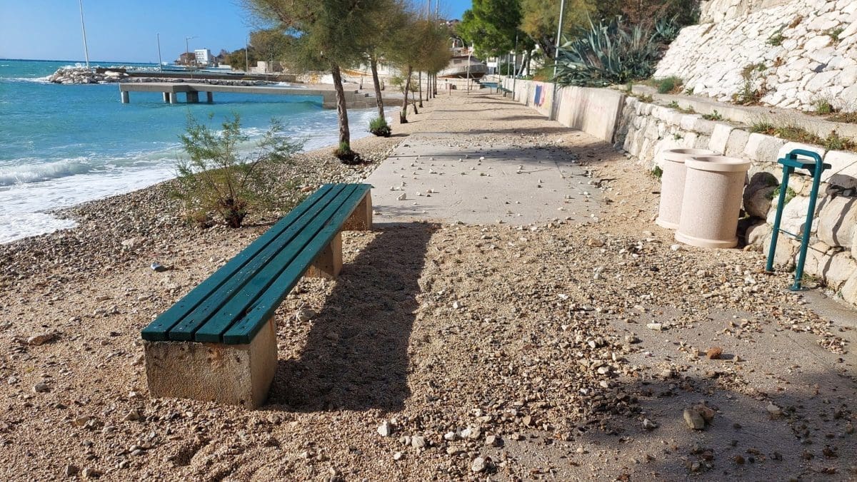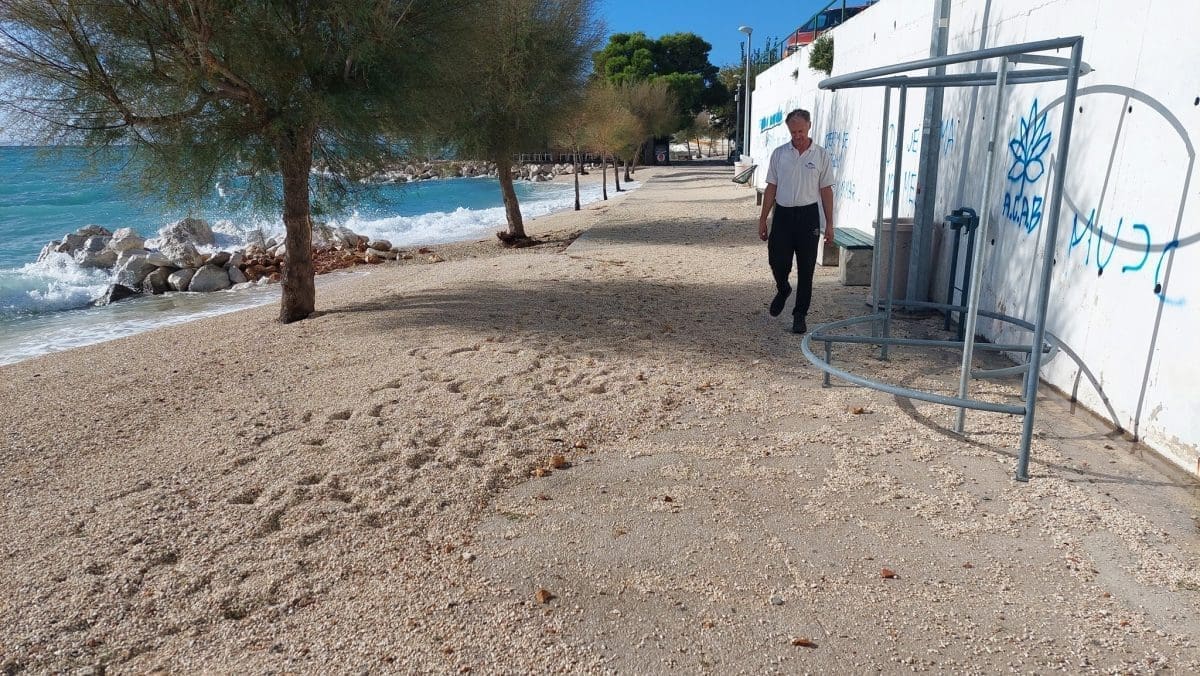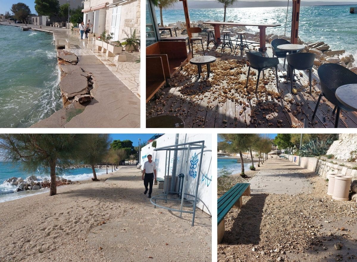 Vremenske neprilike su pogodile i Dugi Rat. Značajne posljedice olujnog lebića i plime mogu se vidjeti i na fotografijama. Na istima se vide i velike količine šljunka, ali i većih komada kamenja nanesene na rivu i štekate kafića, a na samom rubu mjesne šetnice od siline nevremena se raspuknuo beton. Jedna od fotografija prikazuje i veliki procjep betona iz kojeg vire žice.