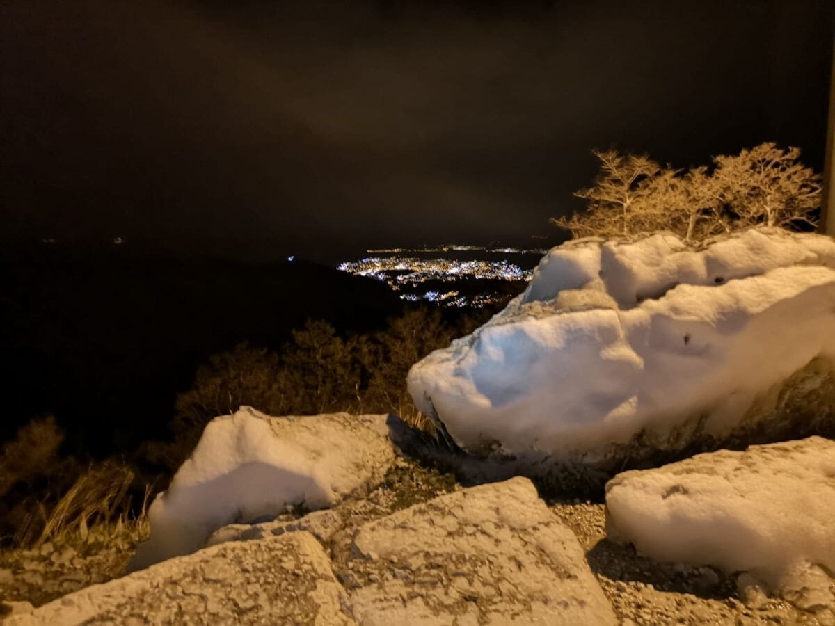 U ponedjeljak navečer, osim na Mosoru, gust snijeg je padao u naseljima Gornje Sitno i Dubrava. Tek što se počeo hvatati za podlogu pri temperaturi zraka od 0 stupnjeva, oborine su prestale. Uz ledenu i snažnu buru, osjet hladnoće povremeno se spuštao ispod -10 stupnjeva.