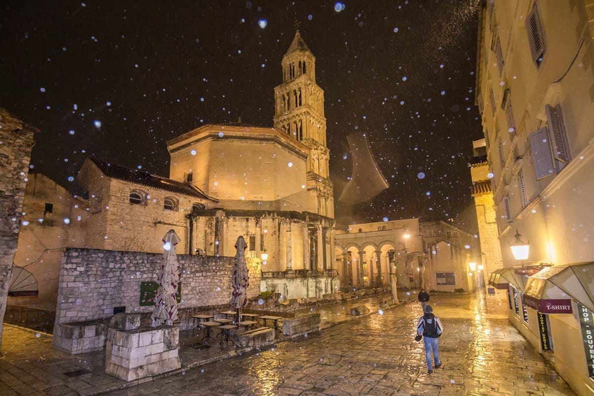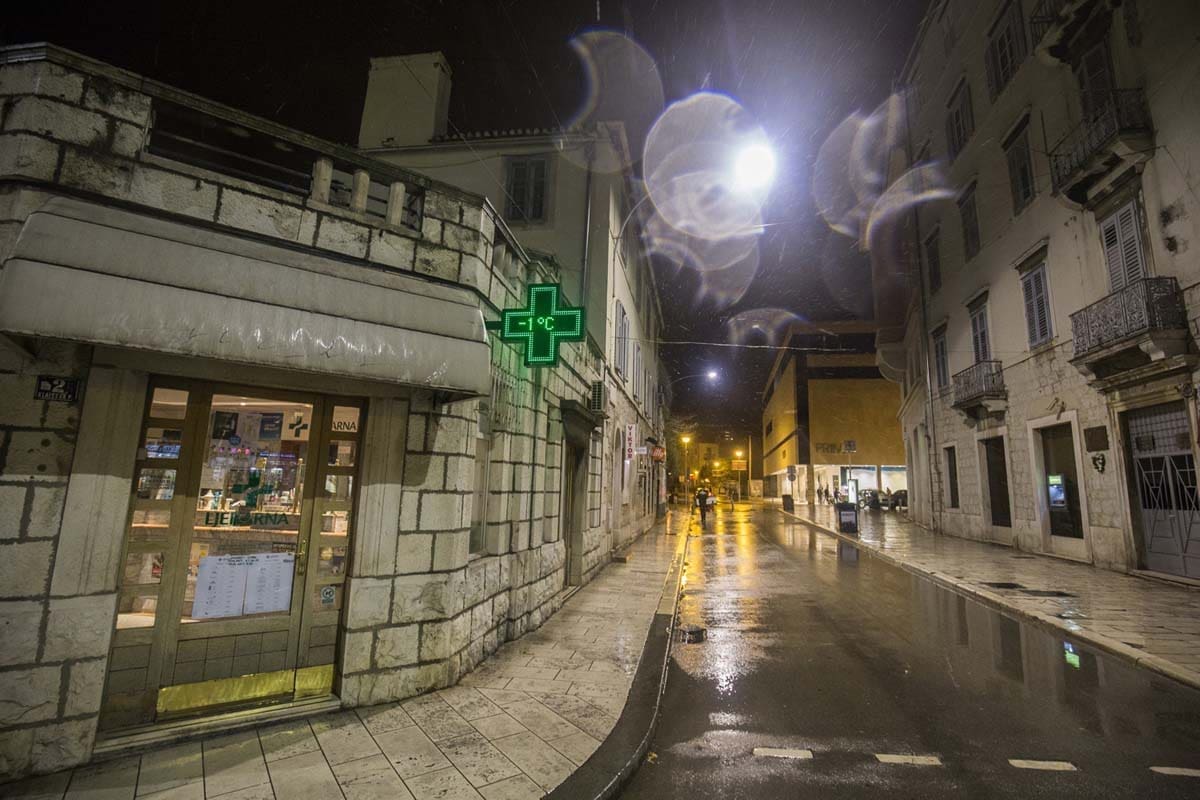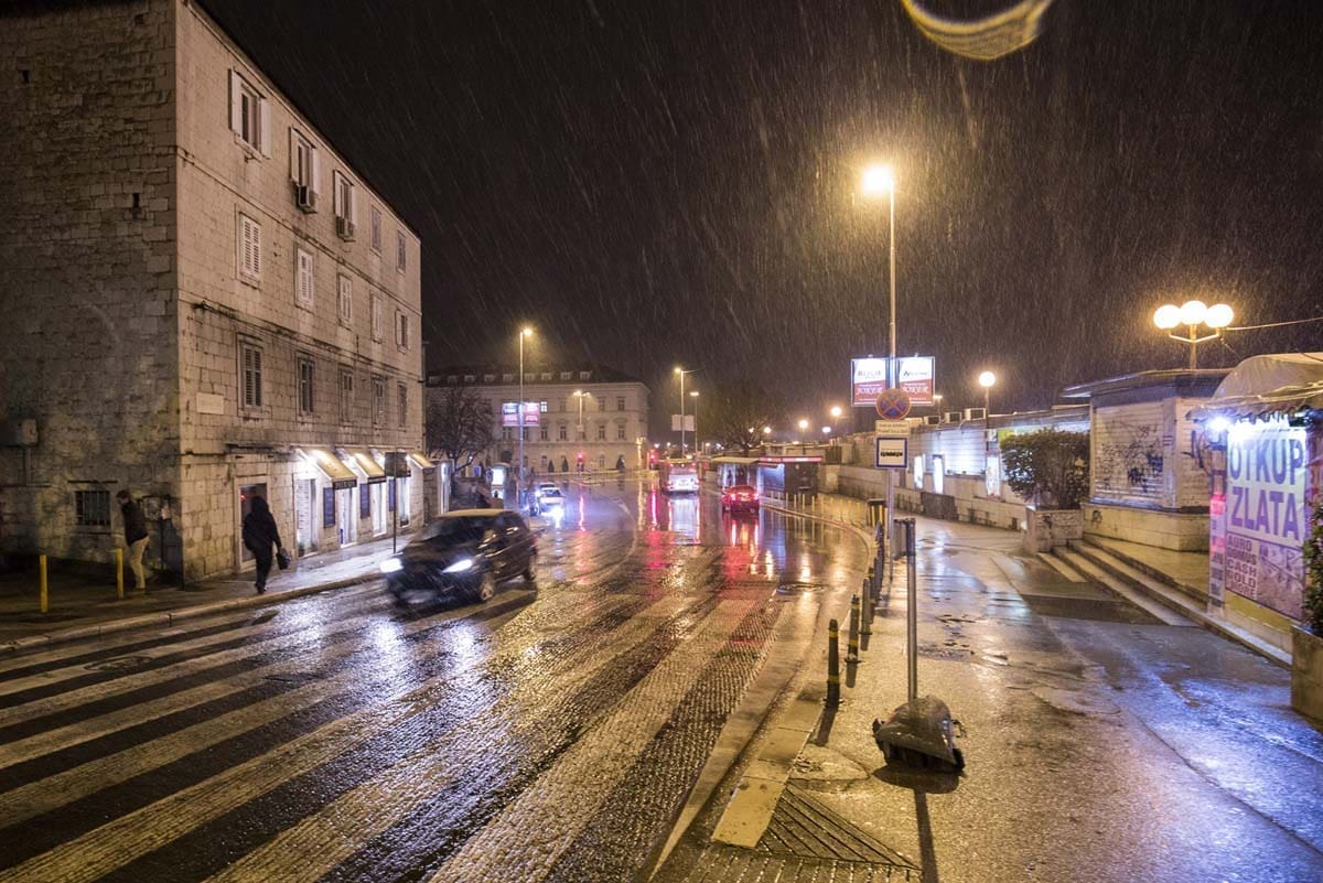 U Splitu se temperatura iza 21 sat spustila na nulu stupnjeva, a snijeg se počeo primati na podlogu. Ovo je već treći put da ovog ožujka u Splitu pada snijeg što se dugo nije dogodilo. U Gornjem Sitnom i Dubravi već je palo nekoliko centimetara snijega, a na Zvjezdanom selu Mosor temperatura je pala na -3°C.