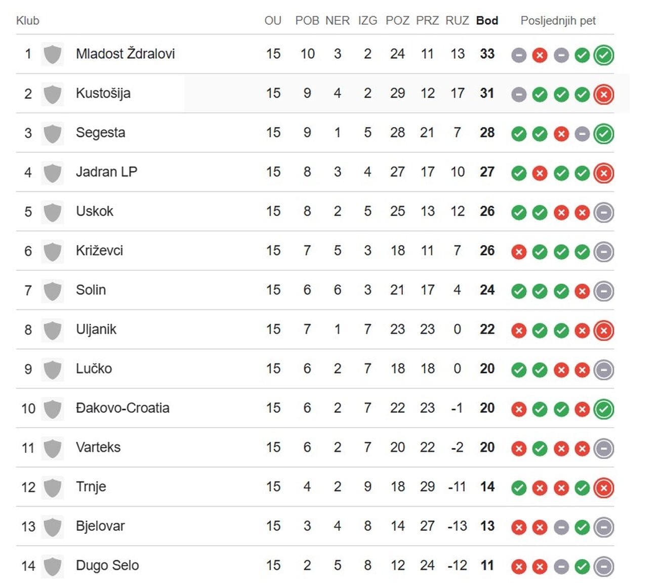 Utakmica 16. kola 2. Hrvatske nogometne lige između Kustošije i Solina je otkazana, točnije rečeno odgođena, te će se odigrati u utorak, 24. veljače.