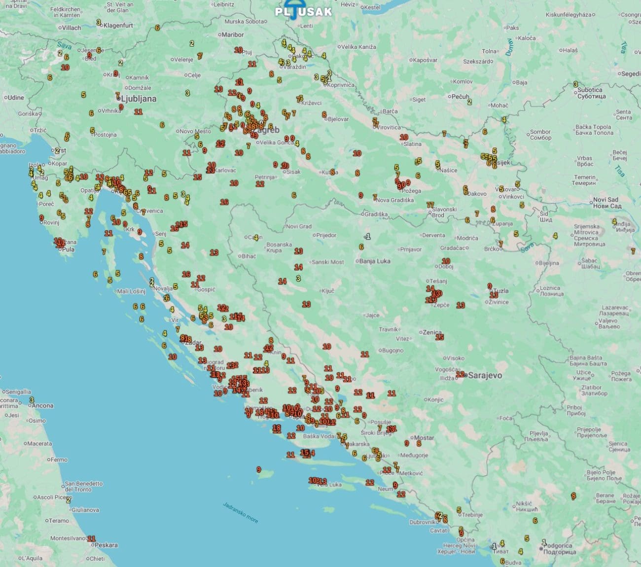 Međutim, napredovanjem tople zračne mase, snijeg će na području Dalmacije posvuda prijeći u kišu. Tako da od noćas ulazimo u duže nestabilno razdoblje. Ono će u početku donijeti osjetno zatopljenje u naše područje, a krajem nedjelje zahlađenje će tek prolazno stići do Dalmacije. U noći na ponedjeljak snijeg je moguć i u nižim predjelima Zagore. No već krajem ponedjeljak stiže novo jugo koje će u utorak imati olujne udare, donijeti kišu i novo zatopljenje.