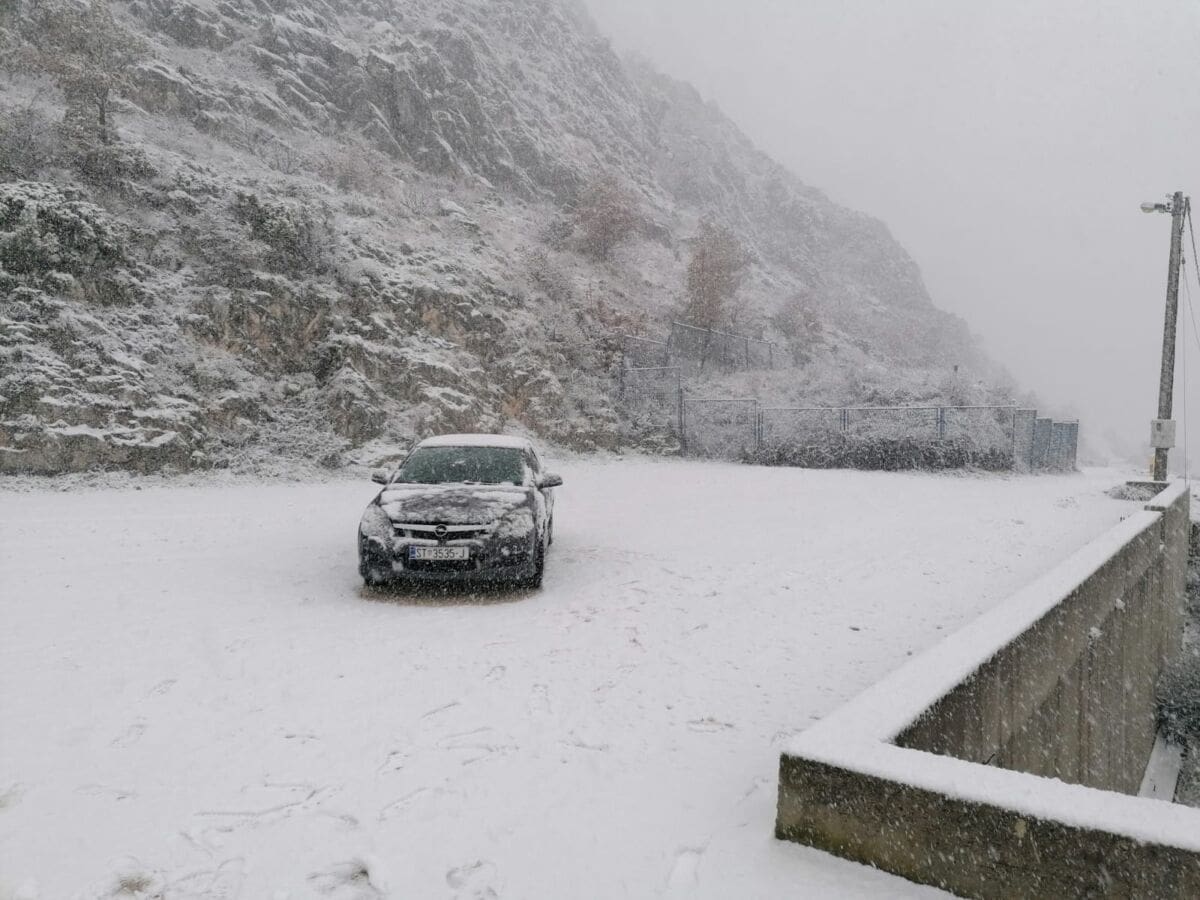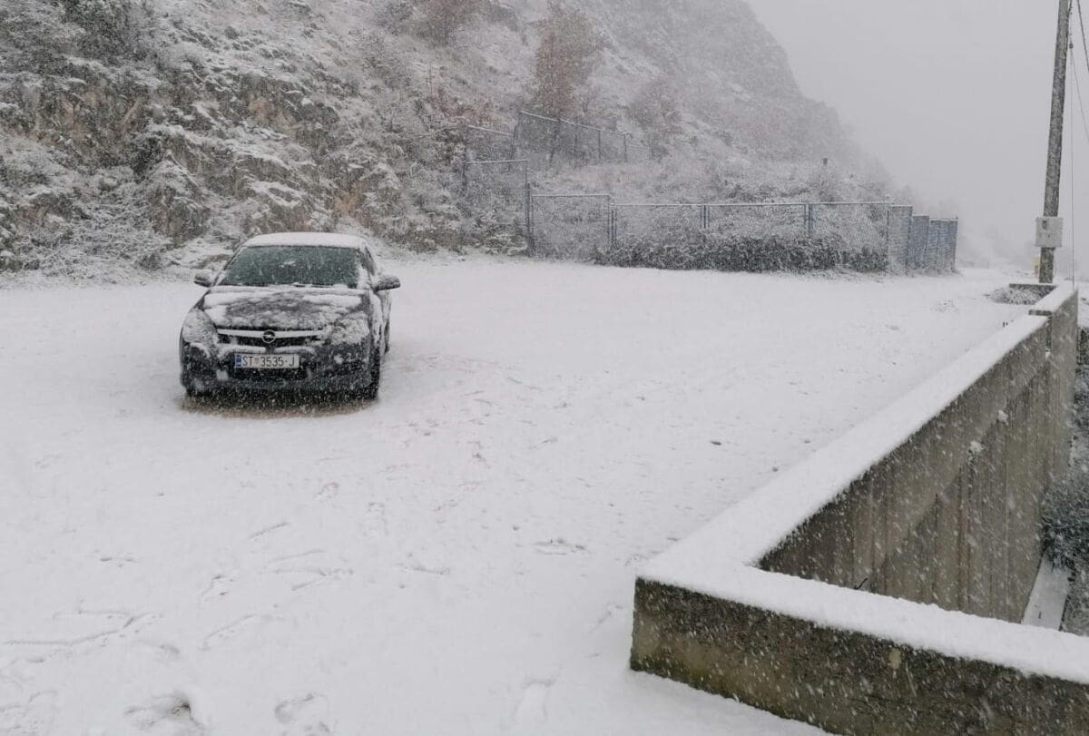 Do 12:30 dijelove Cetinske krajine već je prekrilo do 2 centimetra snijega, a gustoća snijega sve je izraženija. Zbog zimskih uvjeta na cestama, potrebna je zimska oprema.