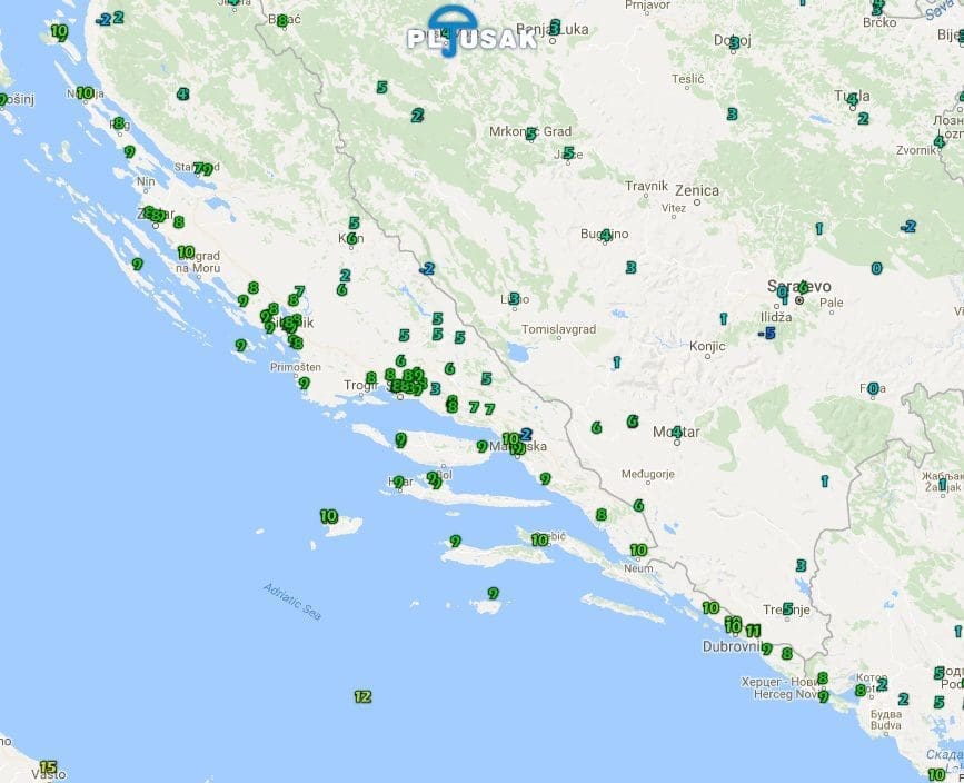 Preko 20 litara kiše po kvadratnom metru palo je isključivo na krajnjem sjeveru Dalmacije, u okolici Starigrada Paklenice. U većem dijelu Zagore palo je 10 do 15 litara kiše, a uz obali na otocima mahom manje od 10 litara.
