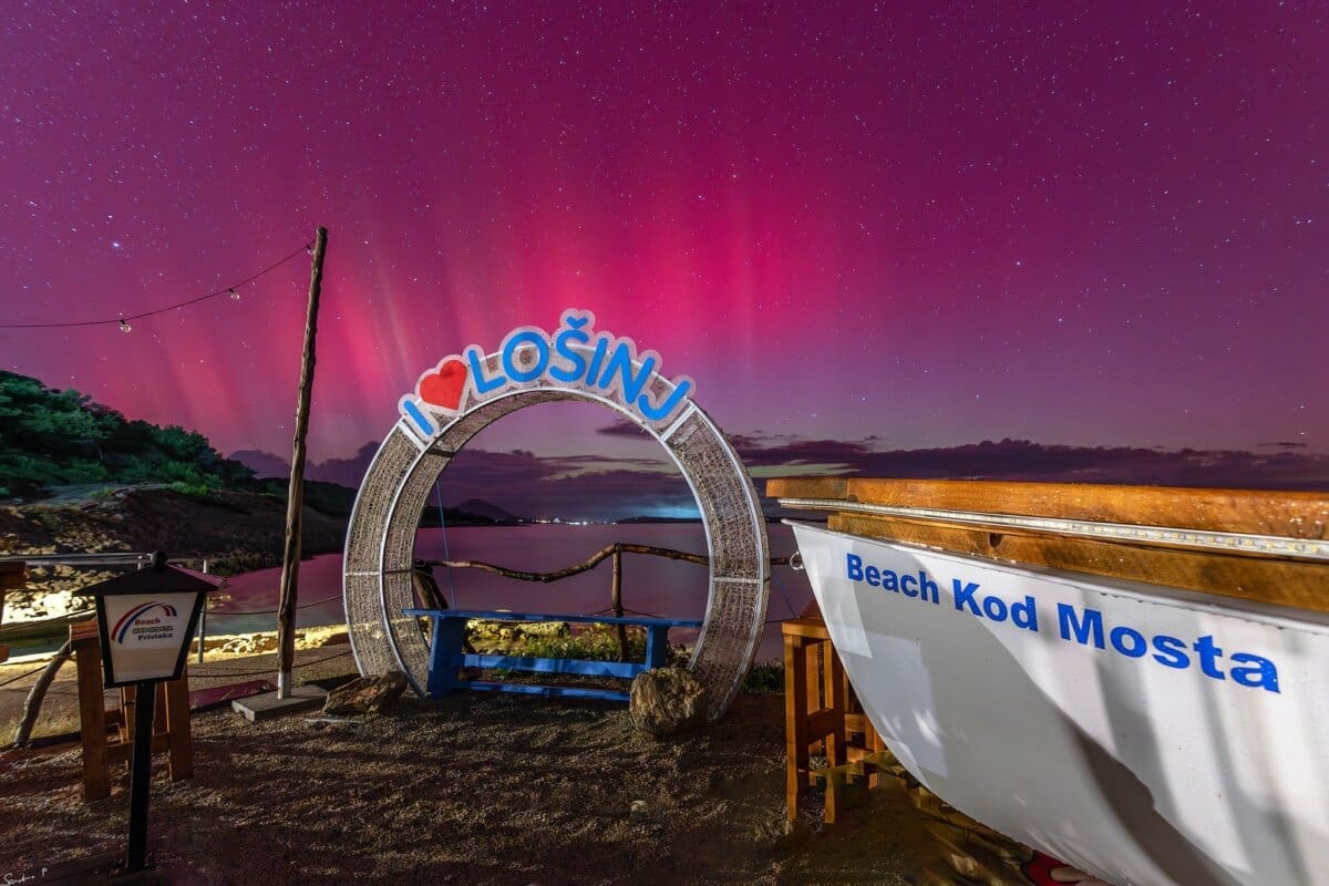 Krenuo sam tada prema Lošinju, bio mi je plan jedna crkvica. Tu sam došao i nebo je tada bilo posebno lijepo. Prvo se razvedrilo, a drugo došlo je do intenziviranje aurore pa su se pojavili i pilari. No oko mene je bilo jelenova i divljih svinja i nije mi bilo baš ugodno. Oko 1:15 nebo je doslovno zabljesnulo kako je aurora bila posebna. Tada od adrenalina nisam ni primijetio da mi vlaga pada po opremi. Iako sam radio timelapse, on će biti kratak.