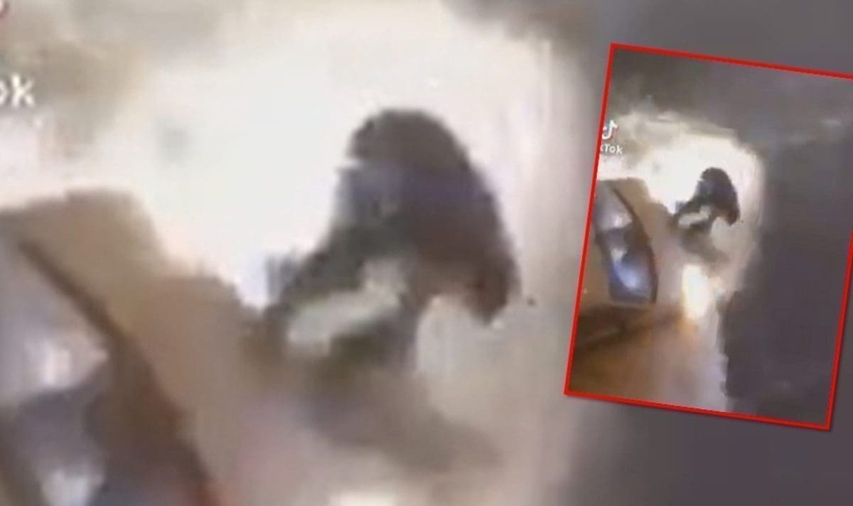 Na snimci se vide muškarac kojega je bujica odvukla ispod kombija i drugi koji ga izvlači i pokušava spasiti.