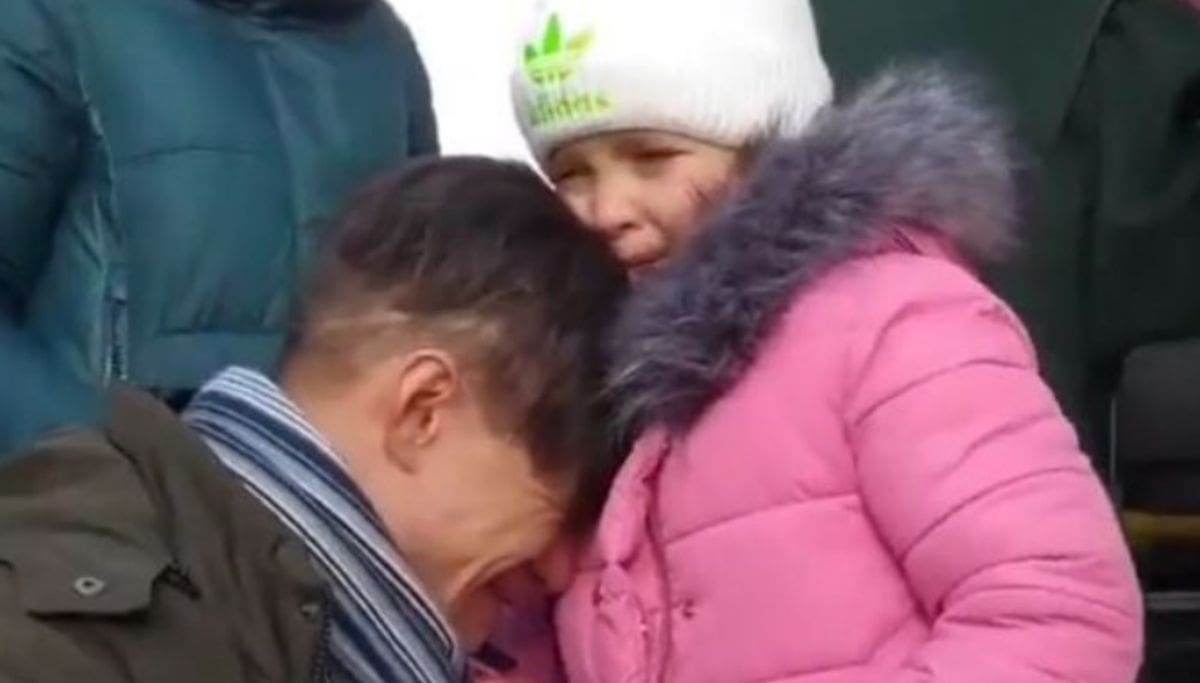 Neimenovani Ukrajinac plakao je kao kišna godina dok je grlio kćerkicu i namještao joj kapu, a plakala je i djevojčica koja se razdvaja od tate. Potresnu scenu na ulazu u autobus netko je snimio mobitelom, a potom je dospjela na Twitter te ju je večeras objavio i Independent.