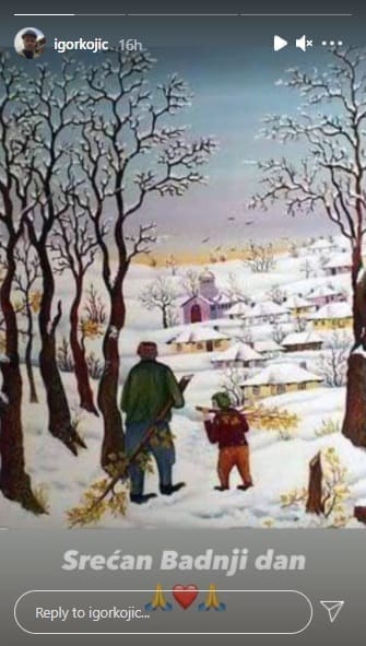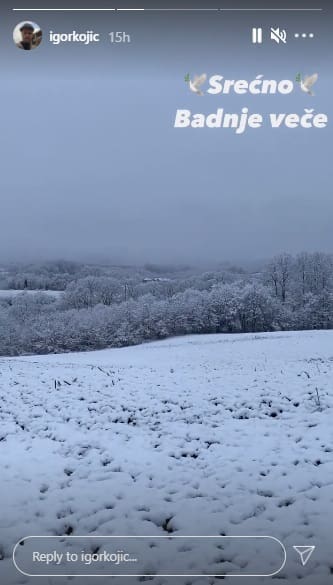 "Sretan Badnji dan", napisao je najprije Igor uz fotografiju starog crteža, a zatim je objavio i snimku sa snijega te zaželio svojim pratiteljima "sretno Badnje veče".