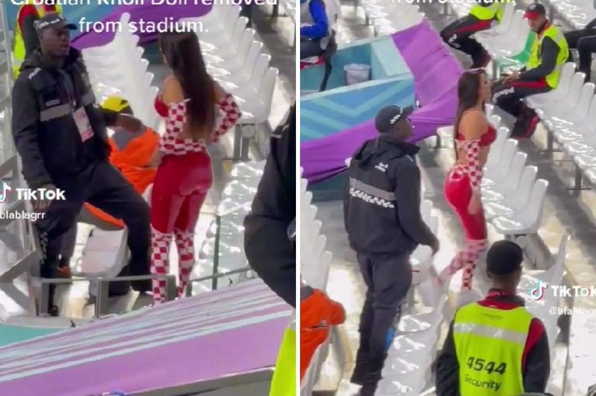 Neposredno prije utakmice Knoll se spustila do ruba tribina i pozirala pred fotografima. No, na snimci se vidi kako Knoll razgovara s jednim zaštitarem koji joj je rukom pokazao prema izlazu.