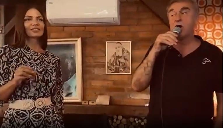 "Evo Jure i Bobana. Jure zove, Boban viče: za dom spremni, poglavniče", pjeva na snimci Prkačin u društvu miss turizma Ivančice Pahor.
