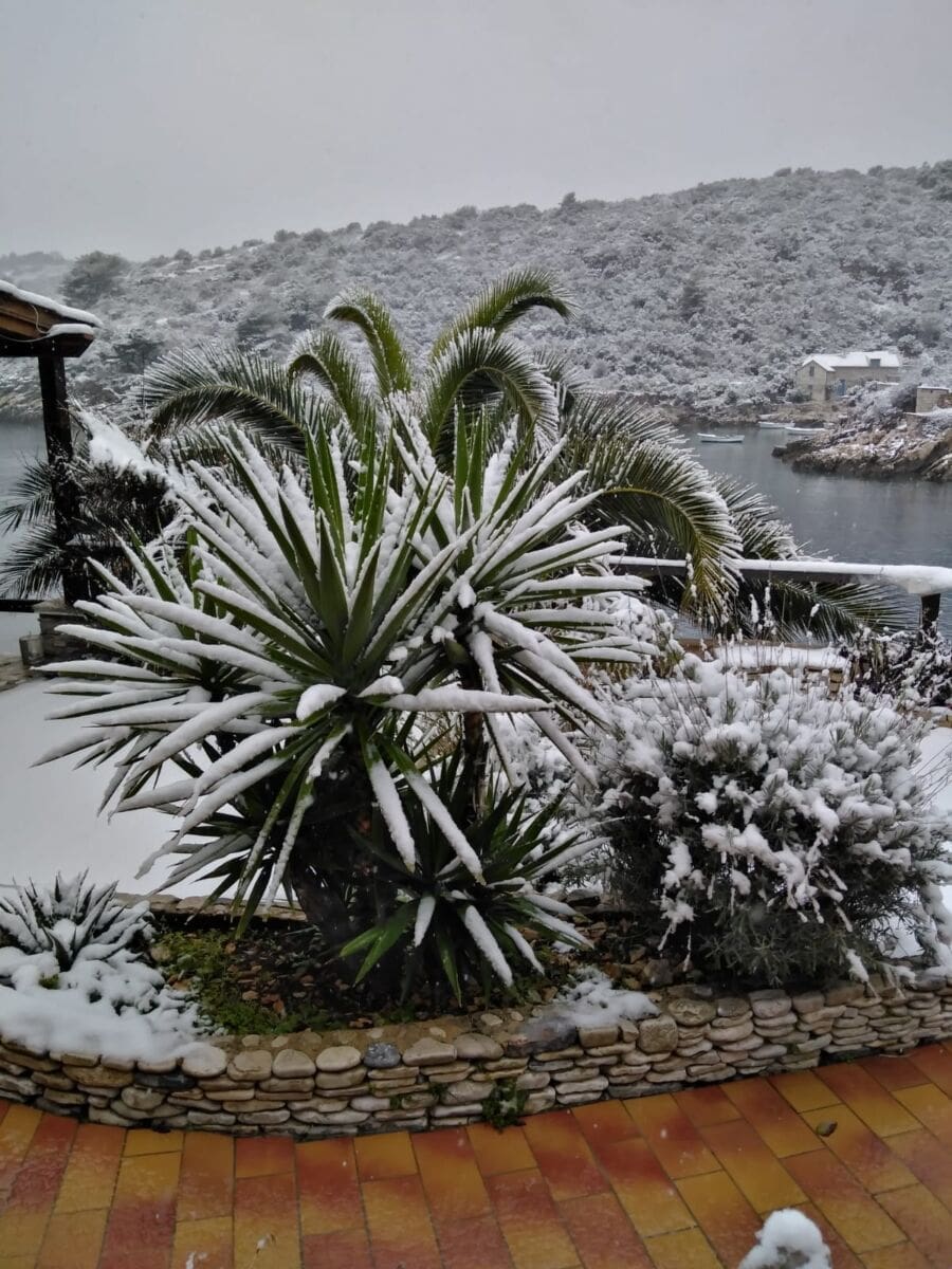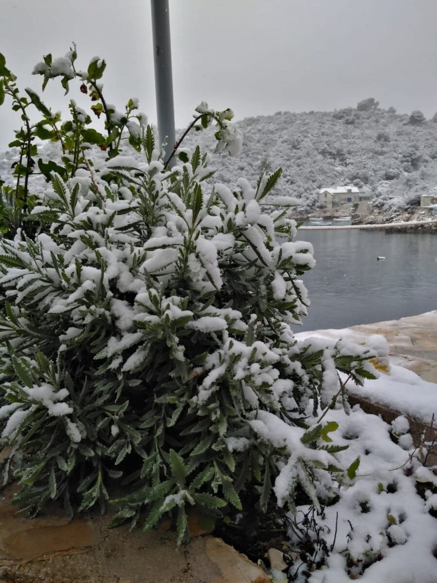 Zabijelili su se Vis, Hvar, Korčula, Mljet, Lastovo, Brač... Snijeg nije zaobišao ni Šoltu.