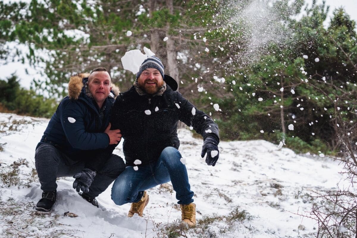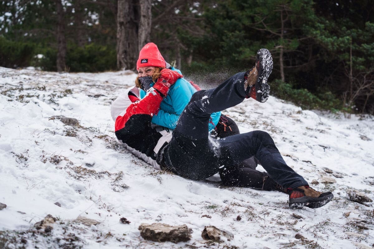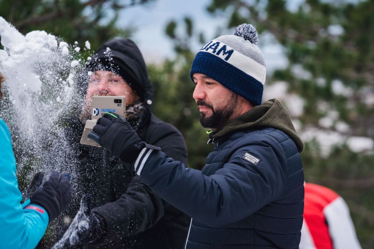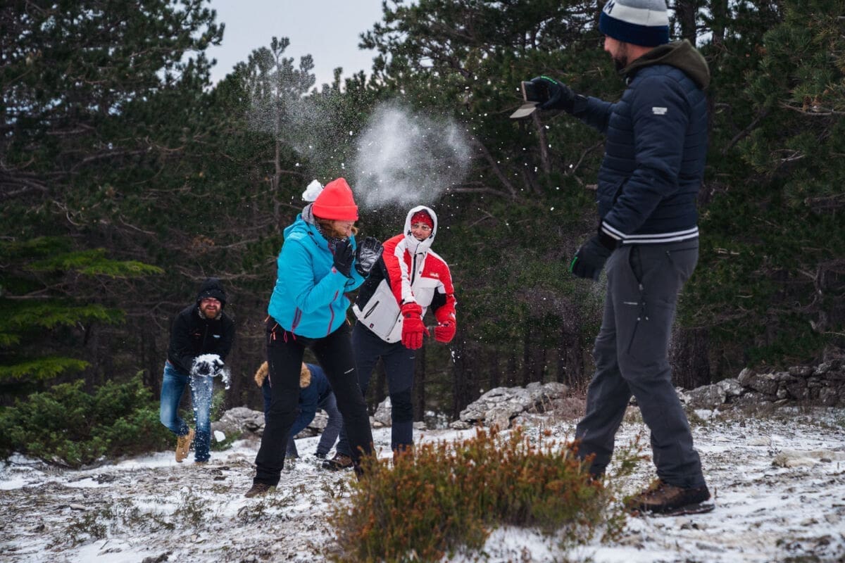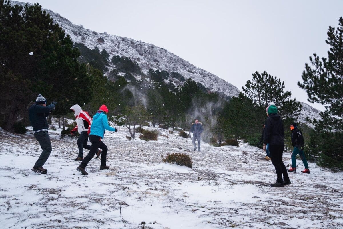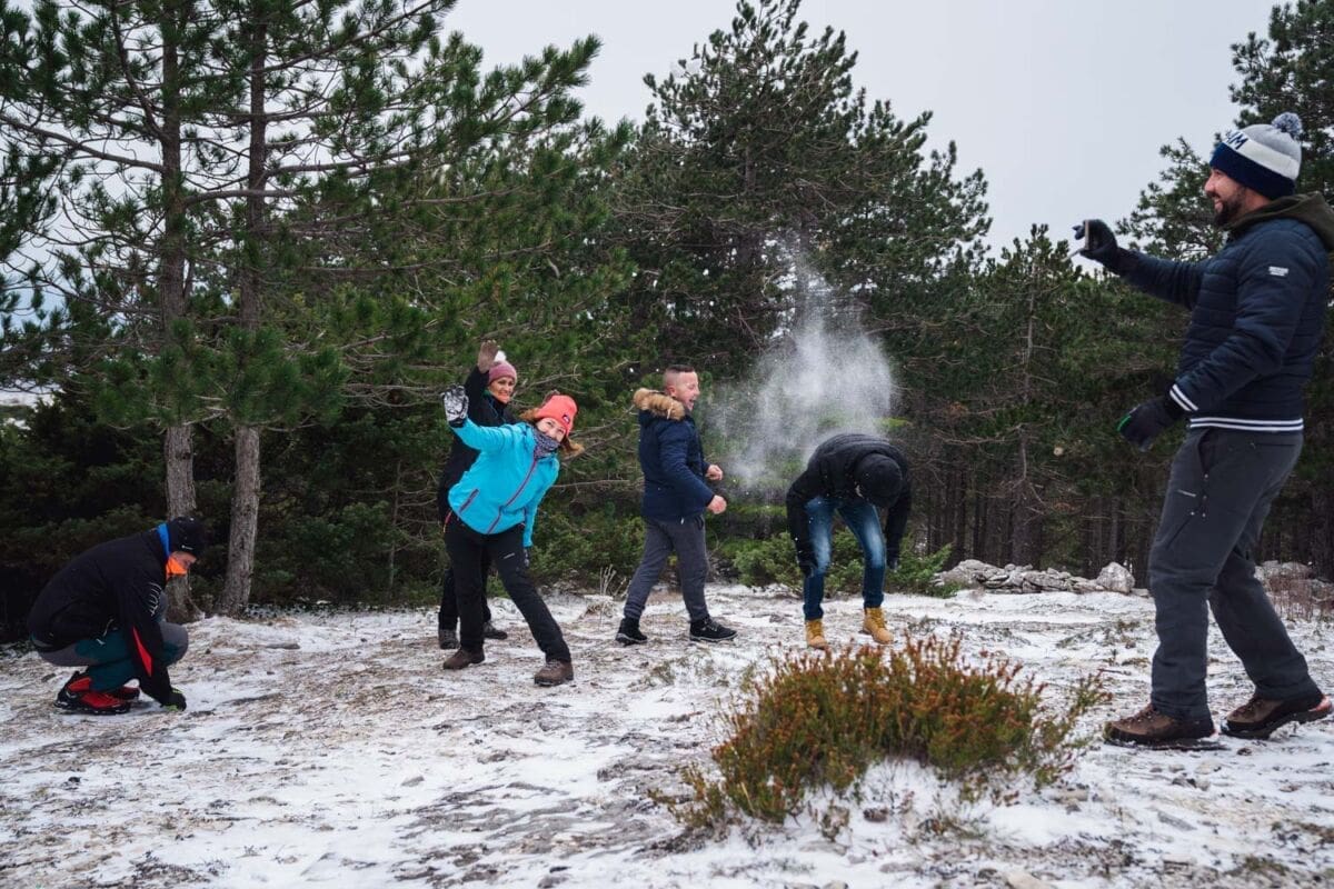 Prvi snježni pokrivač nakon nekoliko tjedana pauze motivirao je posjetitelje doma na zimske radosti pa je "pala" tura grudanja, a neki su guštali valjajući se u kasnozimskom snijegu.