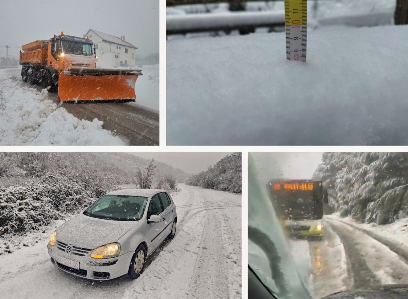 Neodgovorni vozači s ljetnim gumama na snijegu stvaraju ogromne zastoje, tako da promet cestom Solin - Klis jedva teče i vjerojatno je pitanje trenutka kada će doći do njenog zatvaranja. U okolici Klisa stablo je palo na prometnicu pod težinom snijega i kranje otežalo promet, a tamošnji Prometov autobus je ostao zaglavljen.