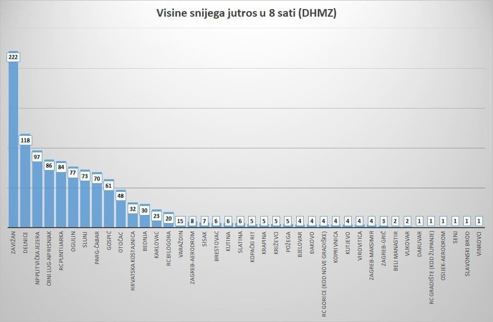 Ovo su visine snijega jutros u 8 sati (DHMZ):