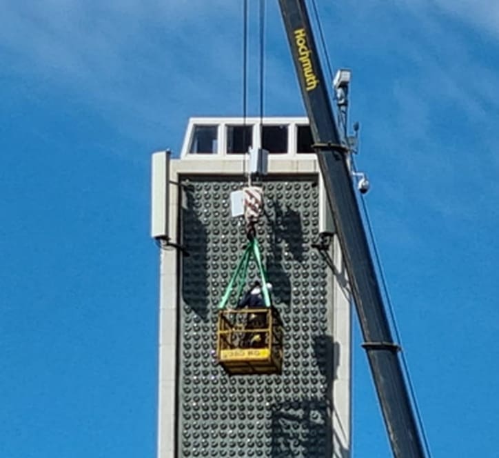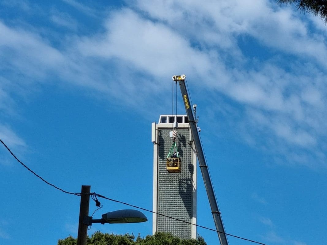 Nešto neobično osvanulo je danas na svjetioniku, odnosno spomeniku koji je postavljen u čast svih palih pomoraca, a isti je smješten splitskom Katalinića brigu. Čitatelj nam je dojavio da je danas vidio radne strojeve i radnike koji su montirali repetitore na kultni splitski spomenik.