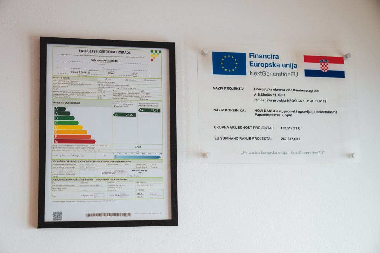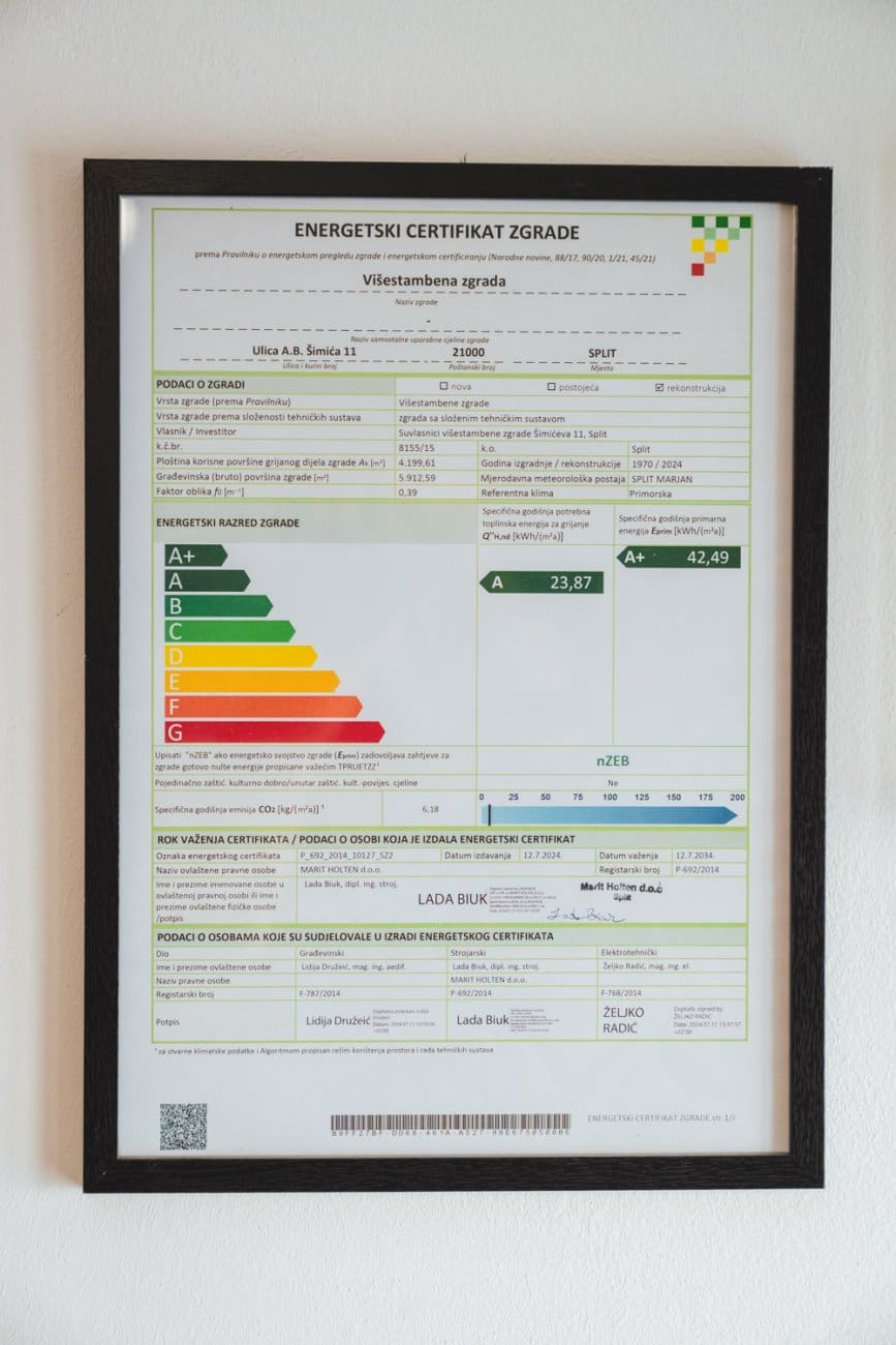 - Fotonaponsku centralu smo sami financirali, a zbog ugradnje centrale suvlasnici ne plaćaju potrošnju dva dizala i 72 svjetla u stubištu, koja moraju radti 24 sata dnevno. Postali smo prvom stambenom zgradom u zemlji koja ima solarnu elektranu na krovištu, a također smo među malobrojnim zgradama u Splitu koja ima certifikat A+, što je u graditeljstvu vrh za energetsku učinkovitost.
