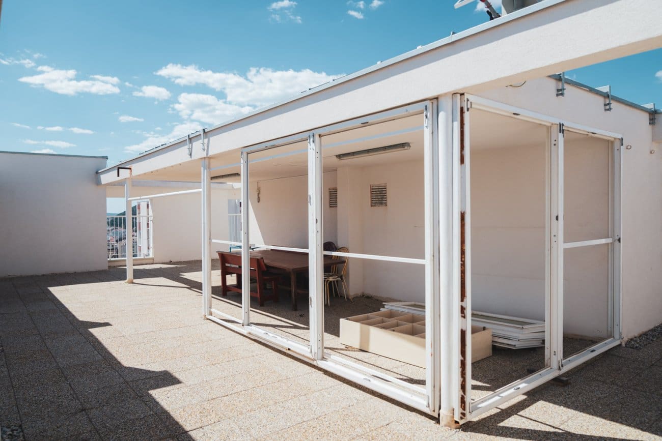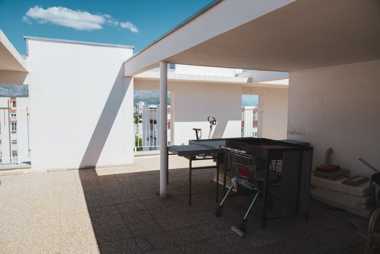 Terasa na vrhu zgrade je uređena kao društvena prostorija i trenutno se ugrađuje zidani roštilj. Đorđević ističe kako je posebnost Šimićeve 11 da nikada nitko od stanara na kraju svakog mjeseca nije bio dužan za pričuvu.