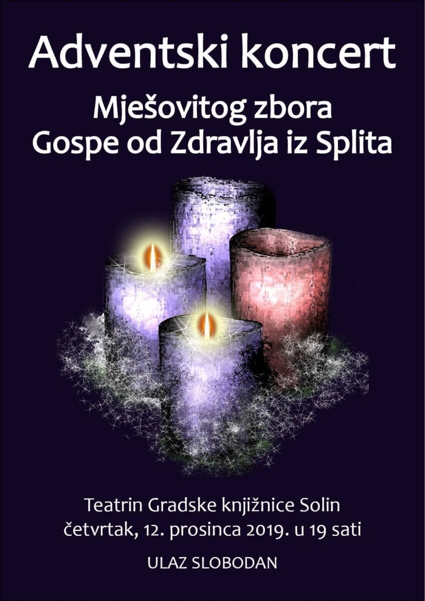 Gradska knjižnica Solin poziva sve zainteresirane da im se pridruže na Adventskom koncertu Mješovitog zbora Gospe od zdravlja.