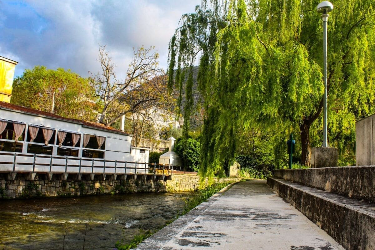 Makadamska šetnica je idealna šetnju ili vožnju bicikla. Nakon mosta na Vilaru šetnica je popločana i njom se može preko idiličnih mostića, koji na nekoliko mjesta premošćuju rijeku, stići sve do slapova i do popularnog izletišta Antoničin mlin.