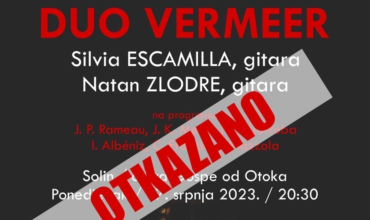 Koncert Dua Vermeer koji je planiran na programu 28. Solinskog kulturnog ljeta za ponedjeljak, 17. srpnja 2023. u 20:30, otkazuje se zbog zdravstvenih problema izvođača.
