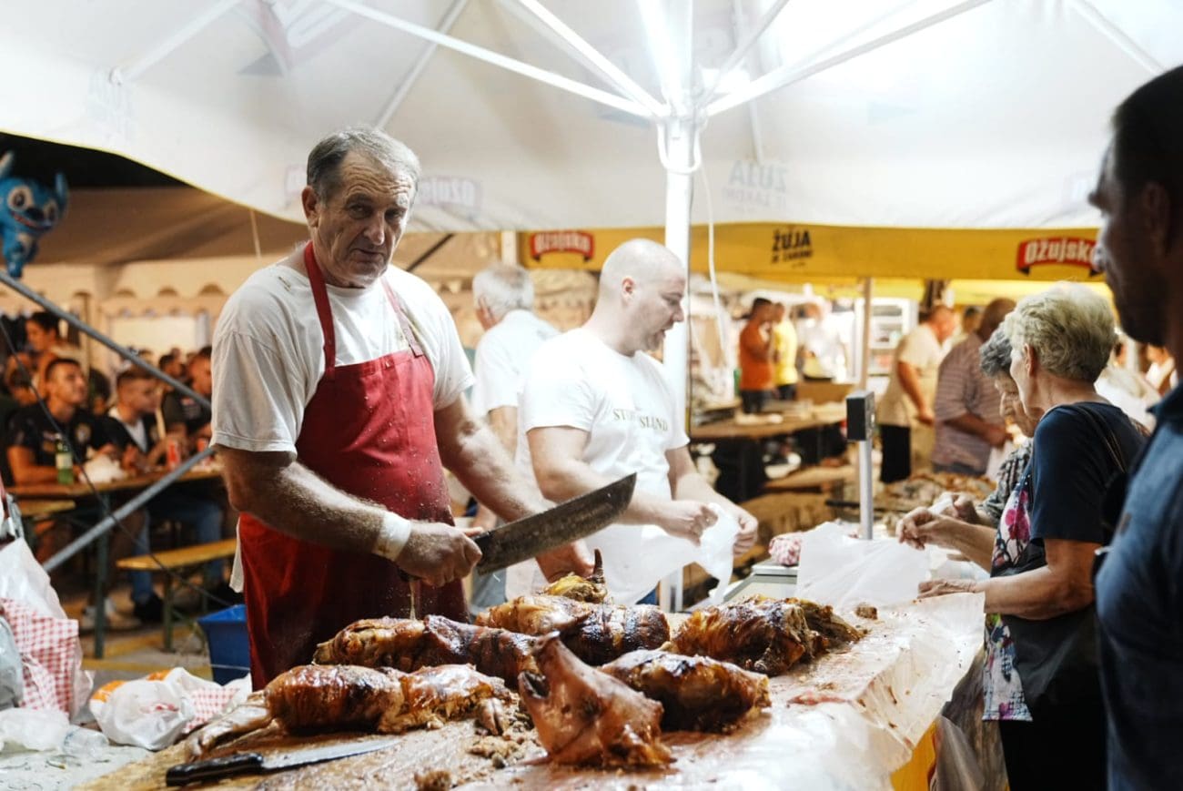 Šušur se posebno osjetio oko stolova s pečenim odojcima i janjcima, gdje su se ljudi gurali u redovima kako bi ugrabili komad vruće janjetine ili prasetine. Cijene su ostale na prošlogodišnjoj razini – 35 eura za kilogram odojka i 45 eura za kilogram janjetine – a prodavači kažu da potražnja ne jenjava.