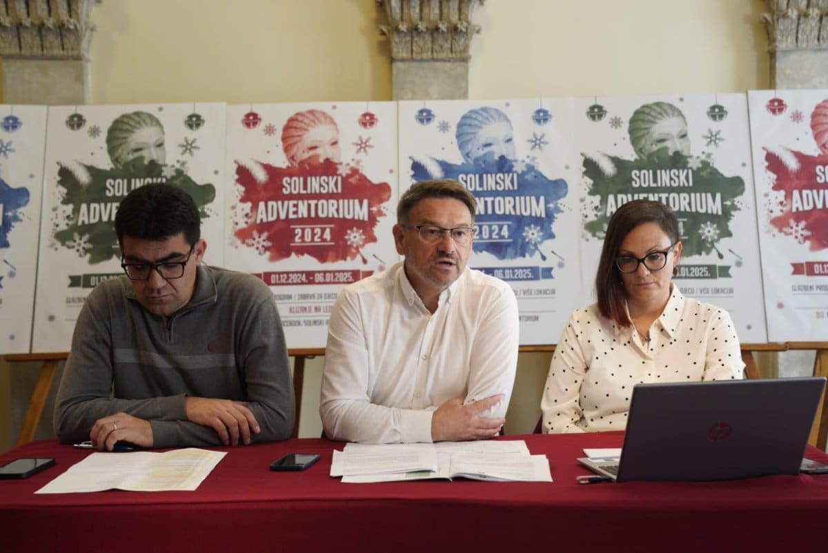 Advent u Solinu - SOLINSKI ADVENTORIUM predstavili su danas u Domu kulture Zvonimir Dalibor Ninčević, gradonačelnik Grada Solina, Tonći Ćićerić, ravnatelj Javne ustanove u kulturi Zvonimir Solin, i Marijana Žižić, pročelnica Upravnog odjela za gospodarstvo, zaštitu okoliša i europske fondove.