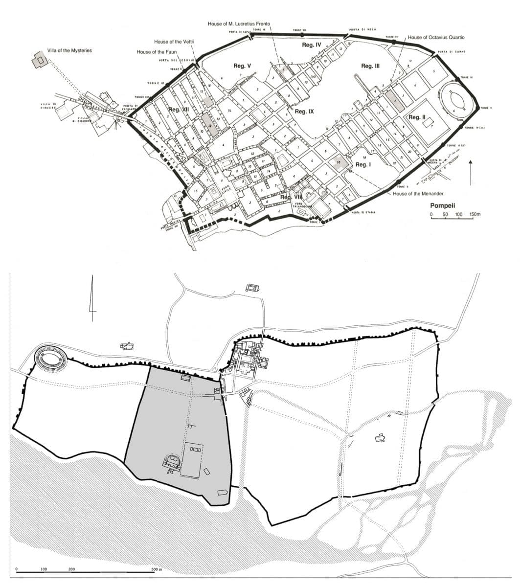 Na slici su planovi Pompeja (gore) i Salone (dolje) u istom mjerilu", napisao je Matijević.