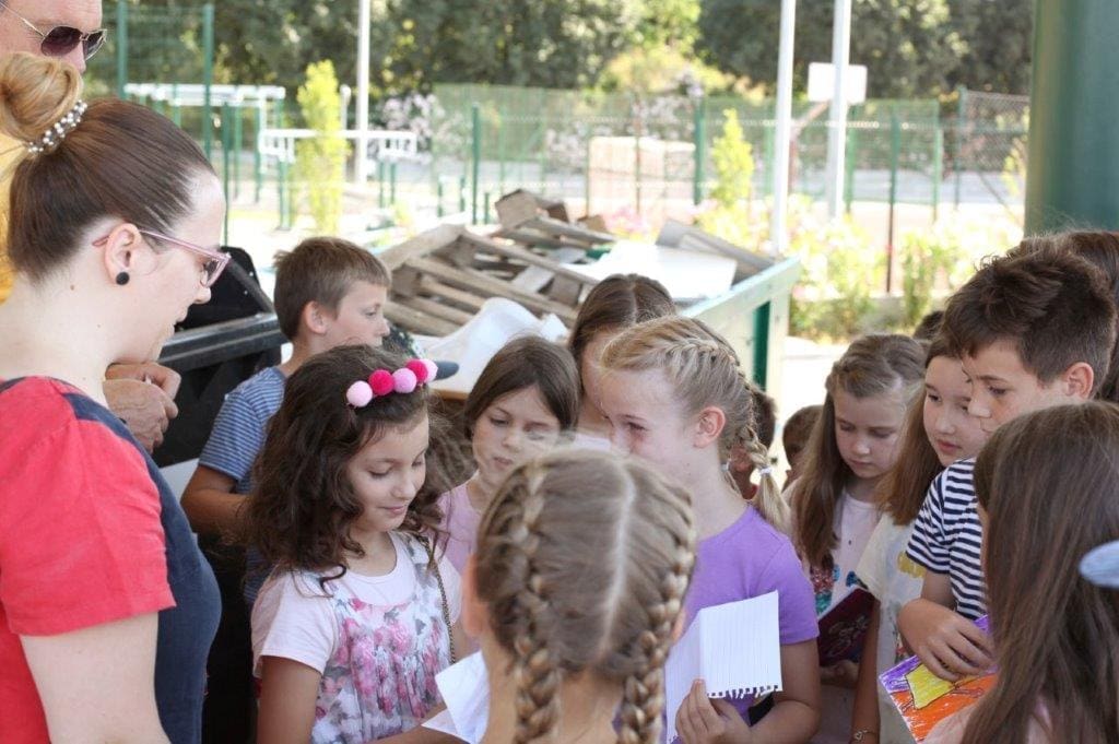 Ante Remetin, djelatnik tvrtke "Čistoća" koja upravlja dvorištem, djeci je objasnio kako izgleda cjelokupan postupak odlaganja i razvrstavanja otpada te ih pozvao da mu se u tome priključe. Učenici su se rado odazvali pozivu i pokazali kako svoje znanje primjenjuju u praksi. Osim svojim primjerom, poslali su, kroz svoje crteže i pjesme, poruku odraslima o važnosti recikliranja.