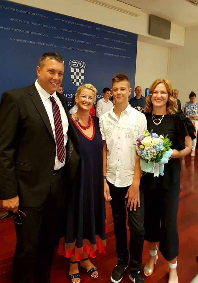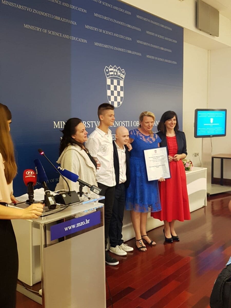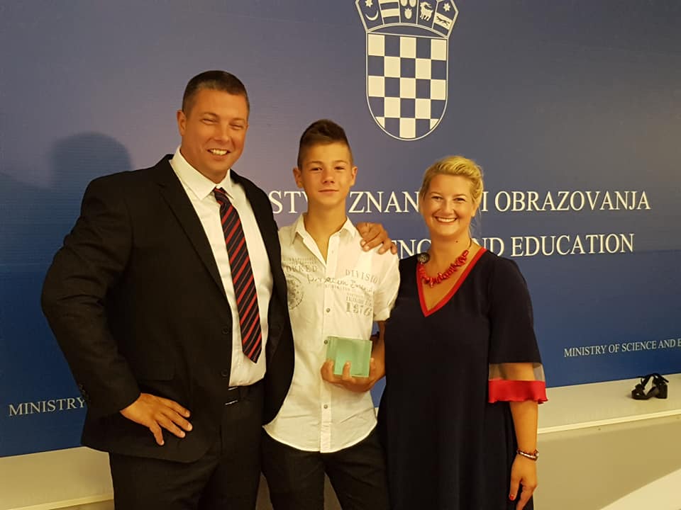 Uz Luku su bili i njegovi roditelji Brankica i Toni Radovanović, profesorica Marijana Gudić, koja ga je prijavila za nagradu te ravnateljica nagrađene Osnovne škole kraljica Jelena, Vesna Ružić.